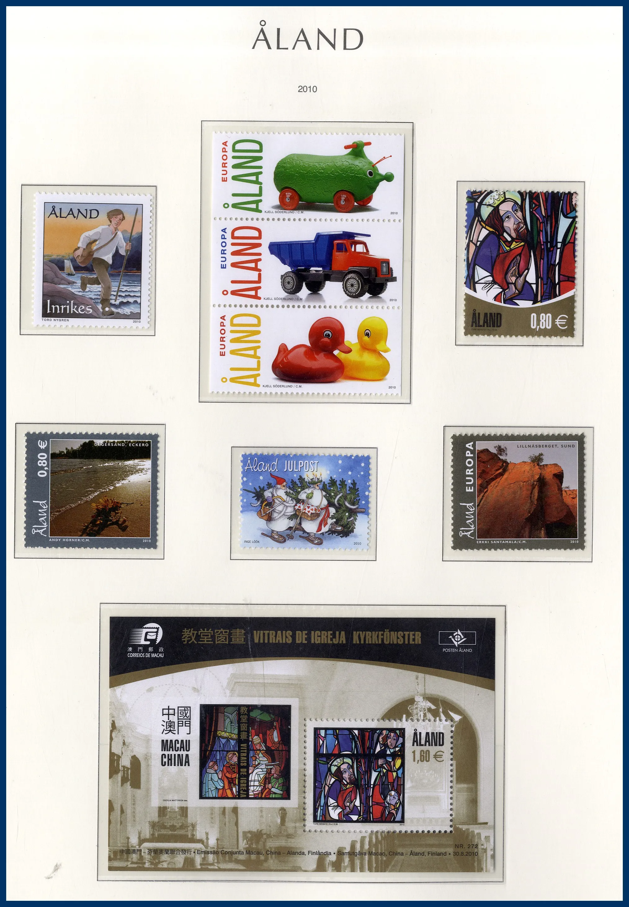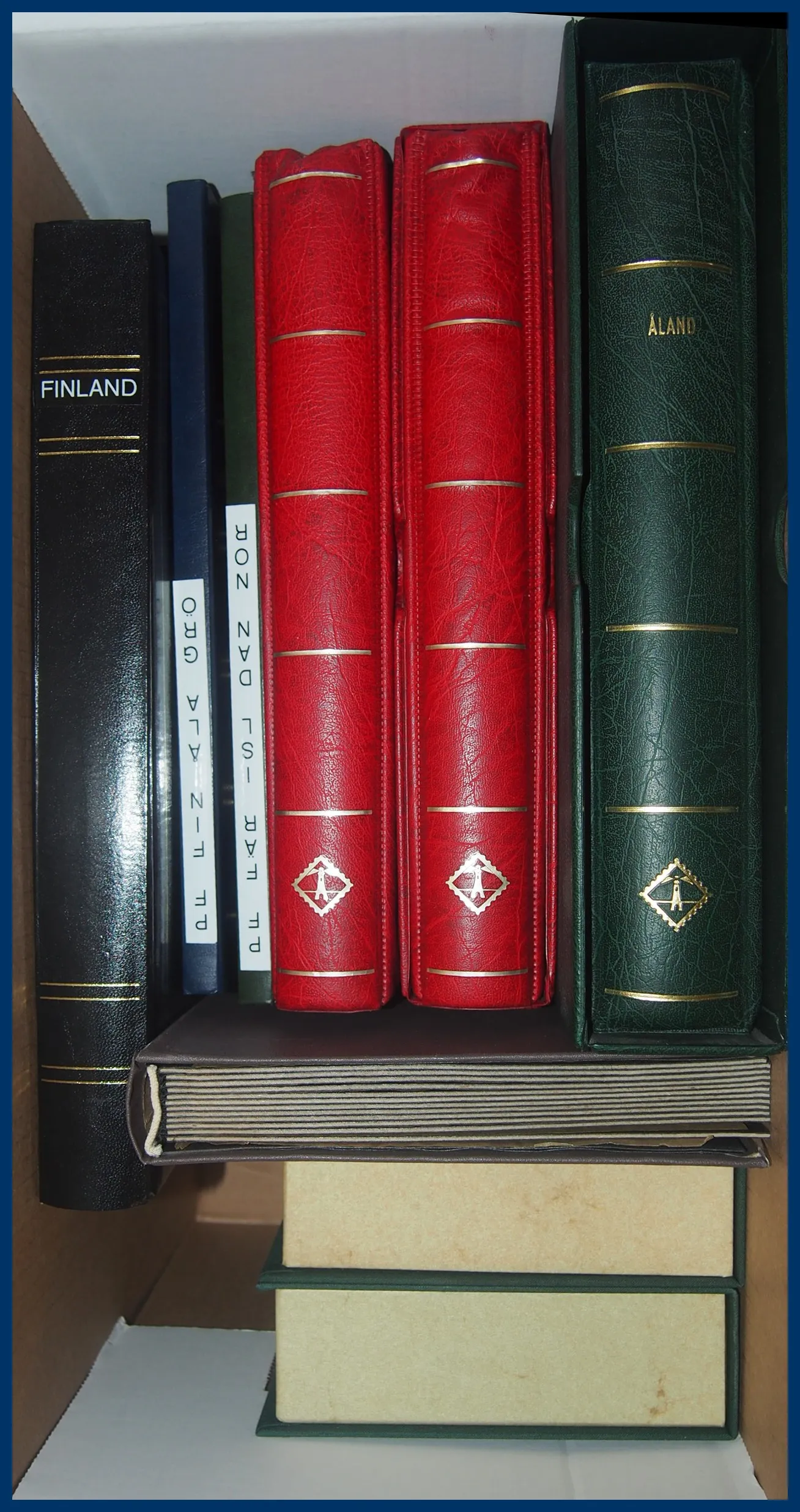 fräscht Leuchtturm förtrycksalbum med fickor 1984-2010. Tillkommer årssatser 1984-2009. Finland samling äldre till 1990 på prydligt egengjorda blad. I början glest, därefter mer välbesatt. Även insticksalbum med Finland samt ytterligare 2 insticksalbum med lite märken från övriga nordiska länder, mest **.