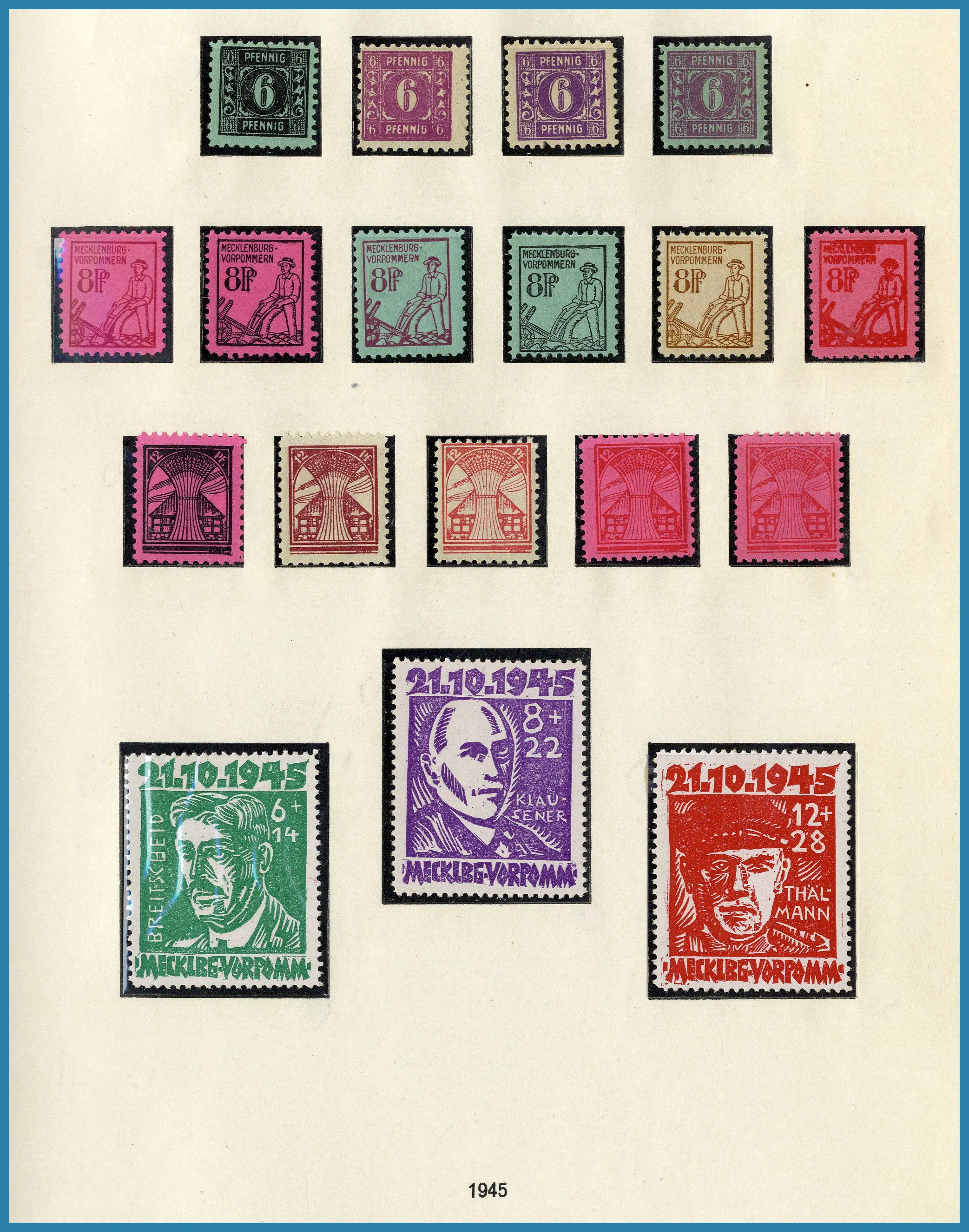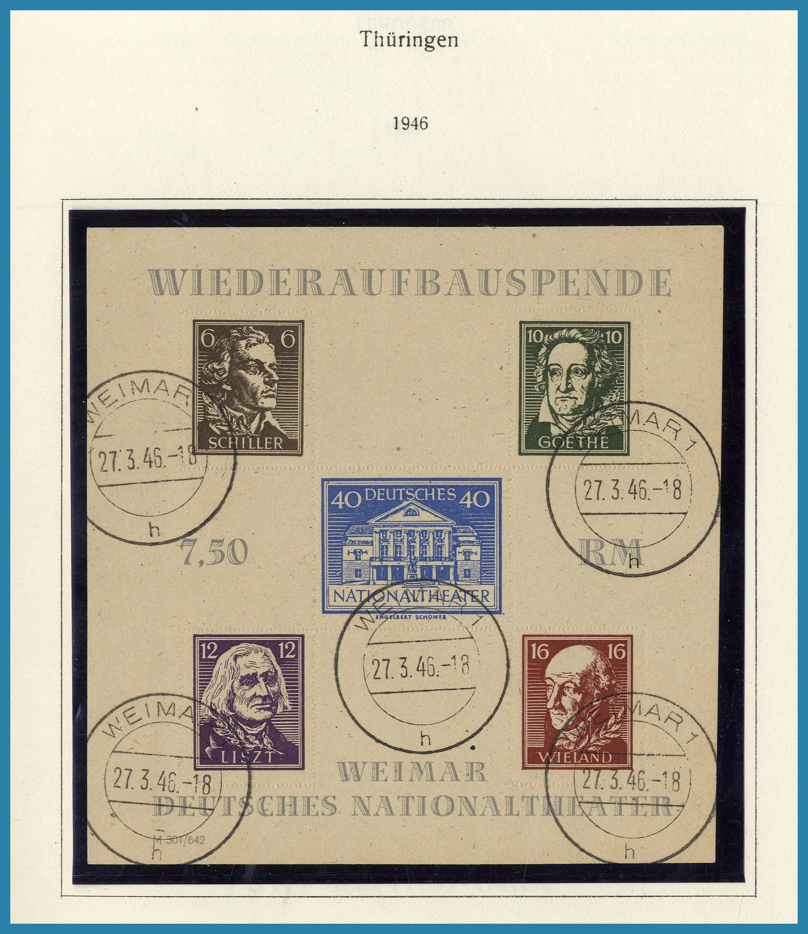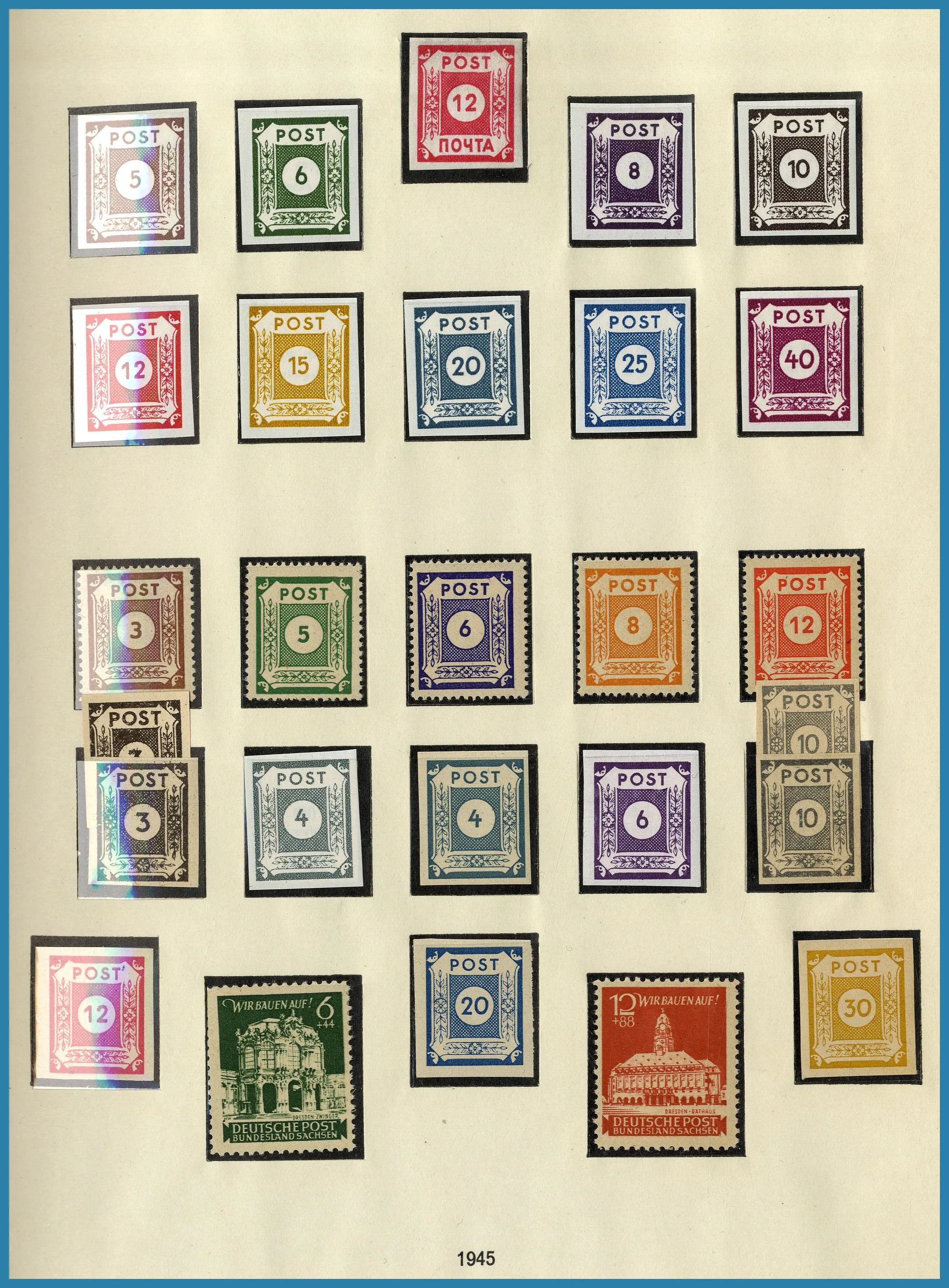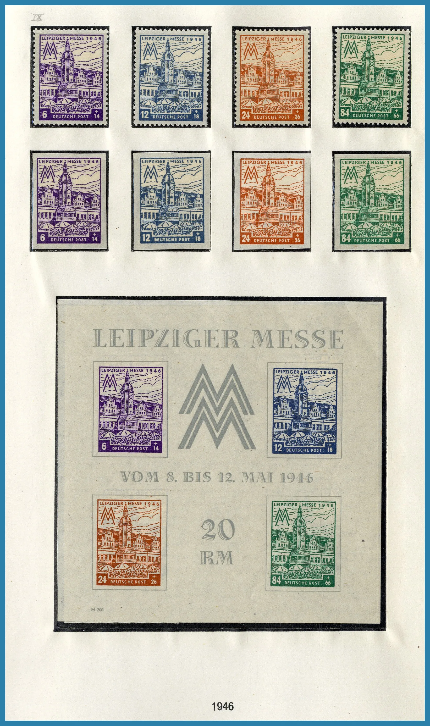 Omfattande samling övervägande **. Sovjet zonen 1945-49 är samlad både stämplat och ostämplat */**. DDR är komplett fram till 1990 troligen allt **, tjänstemärken är ej kompletta. Insticksböckerna innehåller stämplade frimärken. Sammanfattningsvis enormt mycket material. En samling som rekommenderas.