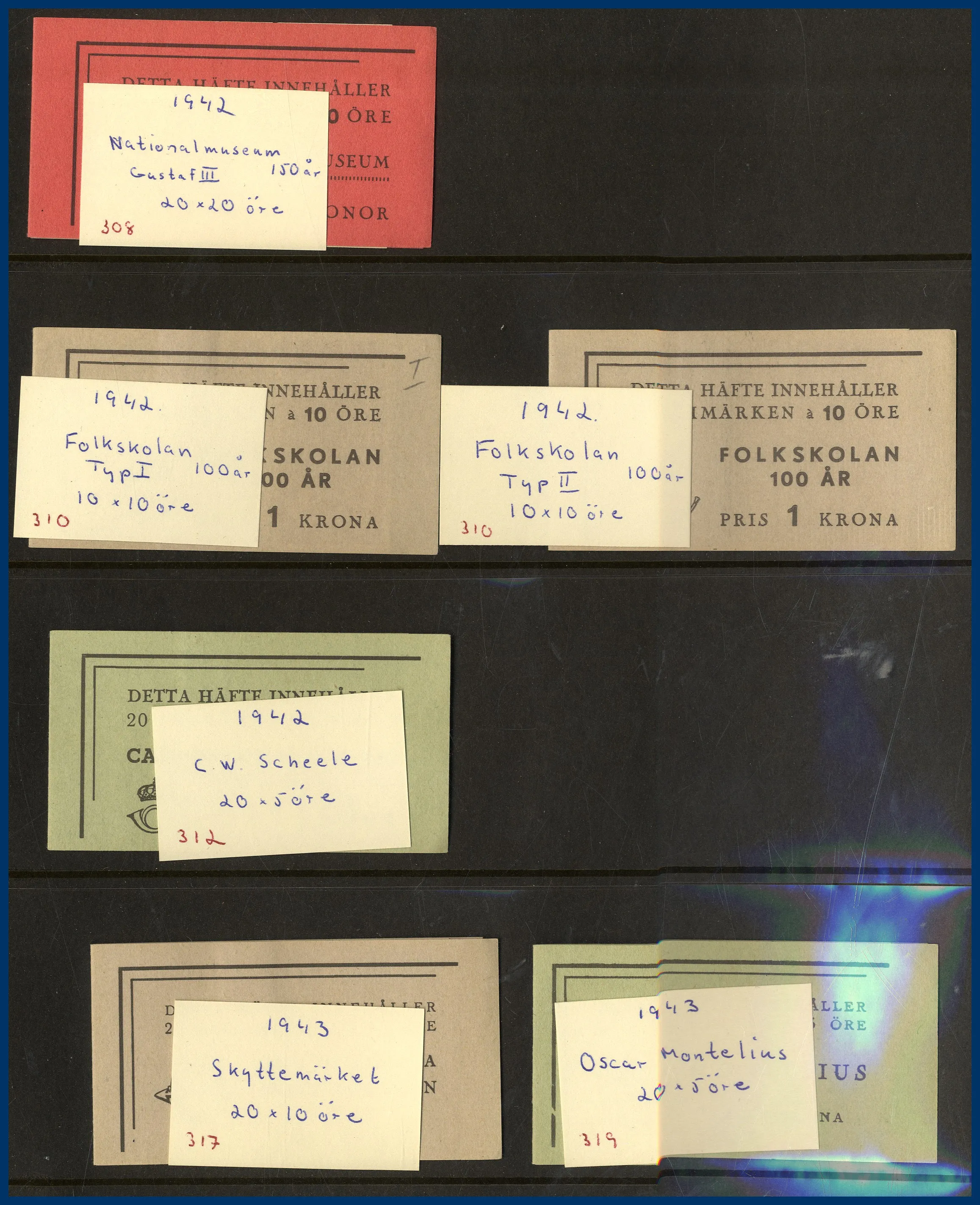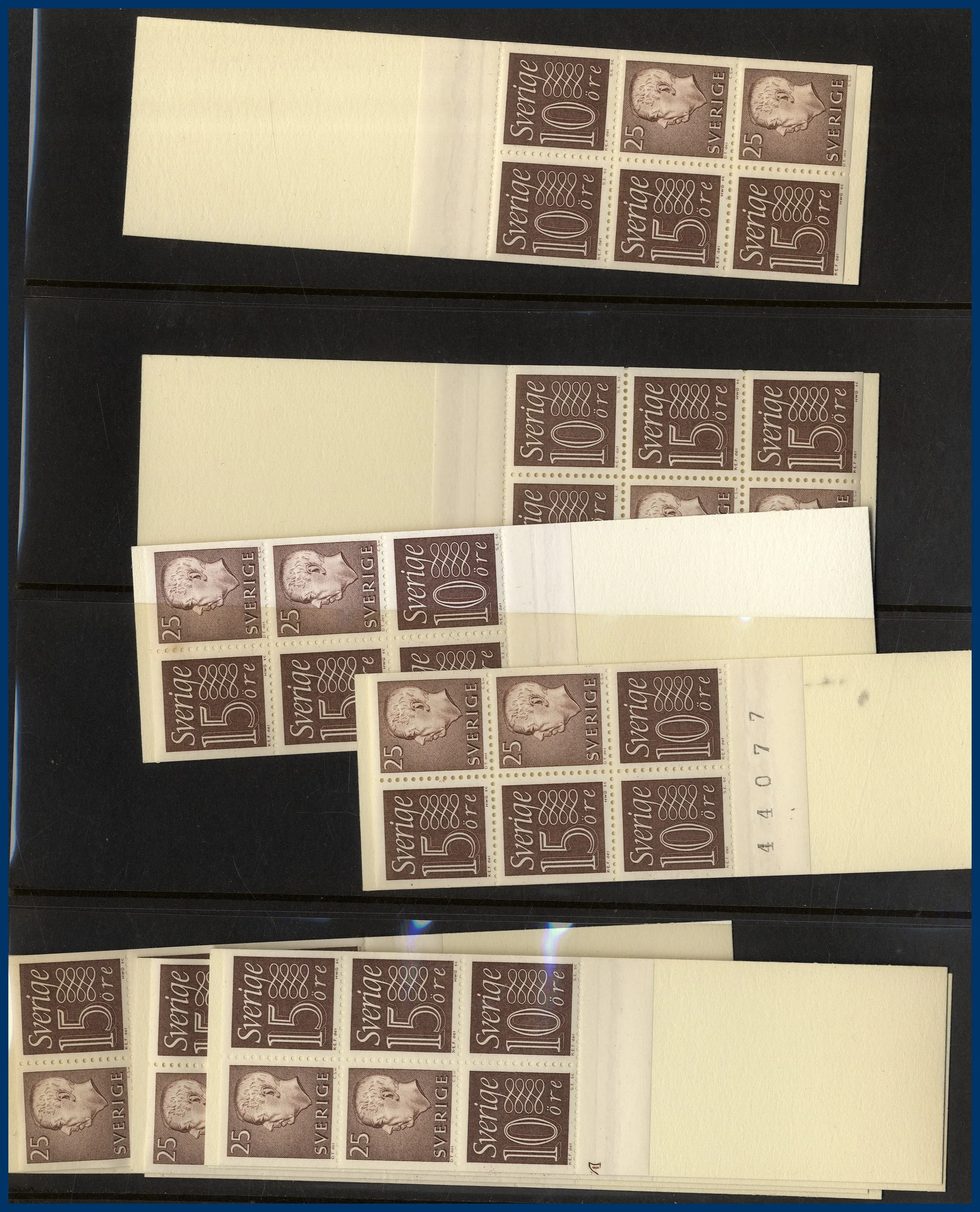 fortsätter sedan från ca 1940-1987 i 4 album + lösa häften i 3 lådor fyllda med mest automathäften samt 1970-1980 talet, samt en bunt försändelser. Även 1 album svenska frimärken ** 1980-87. Flera bättre häften med markeringar. Nominal oräknad.
