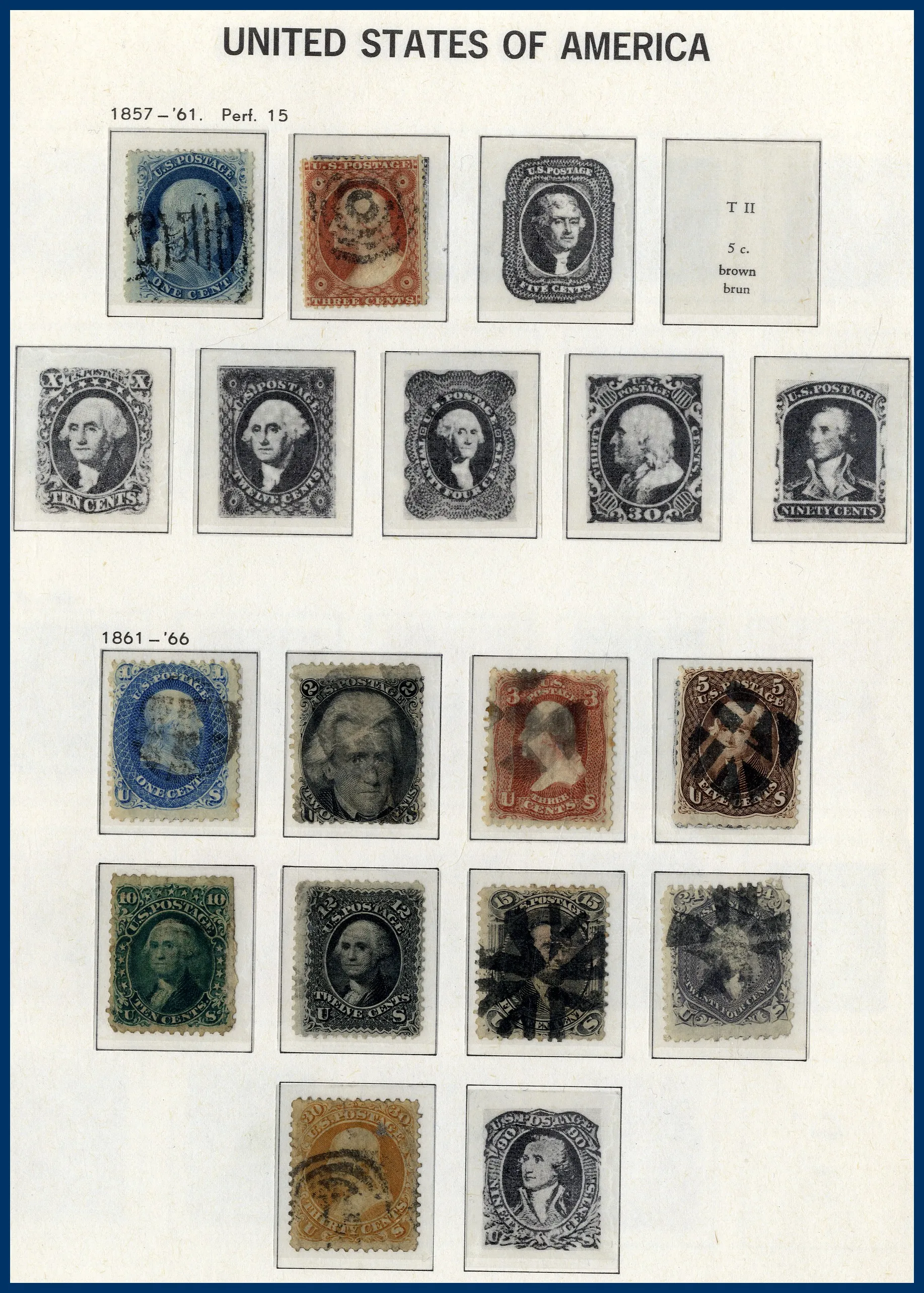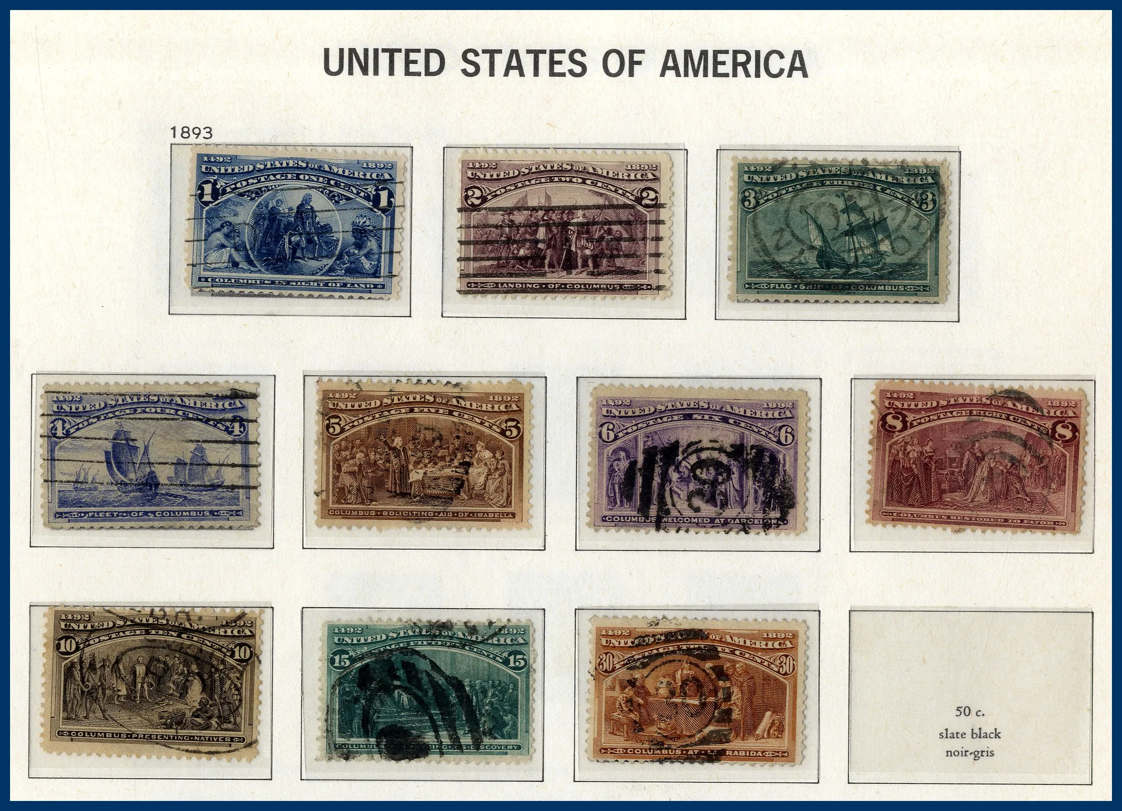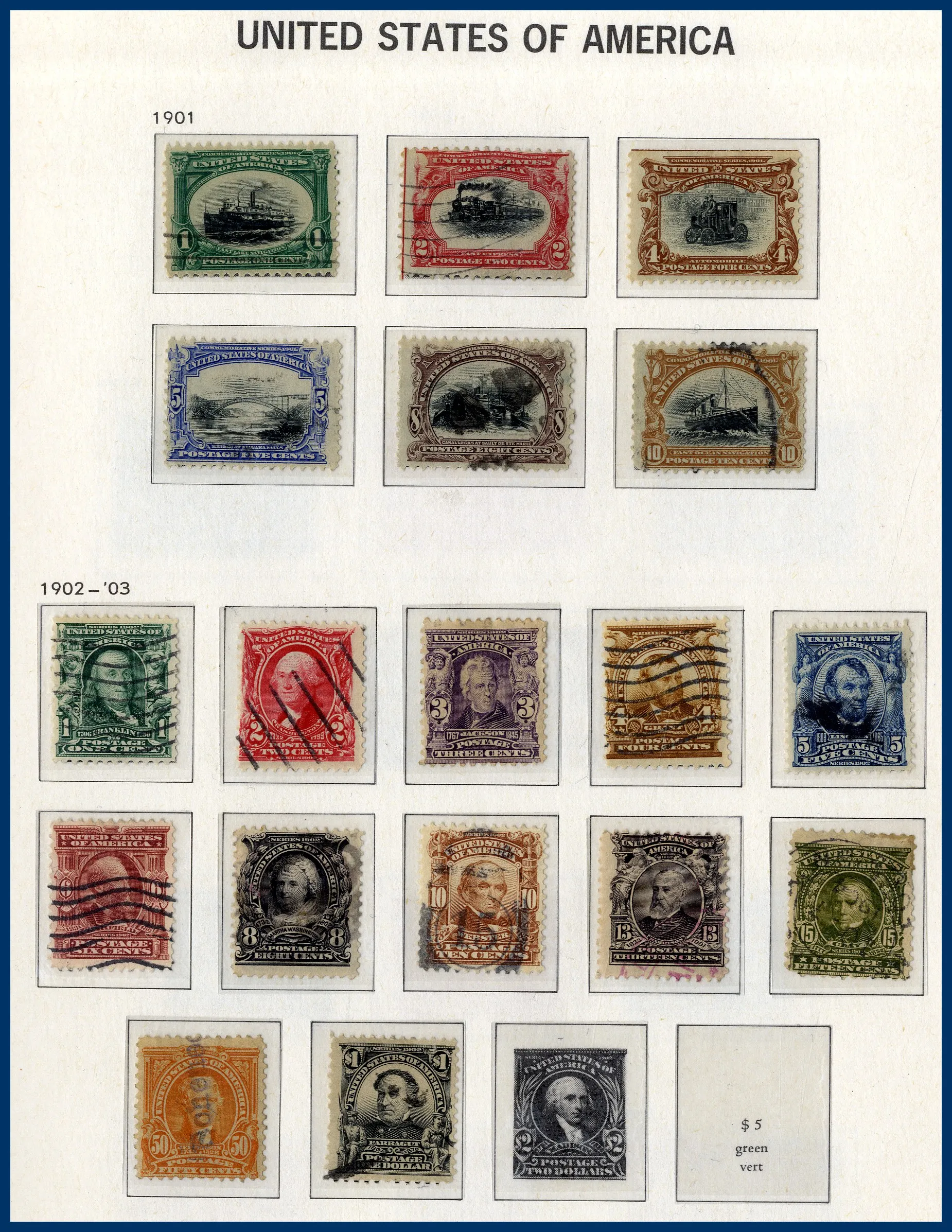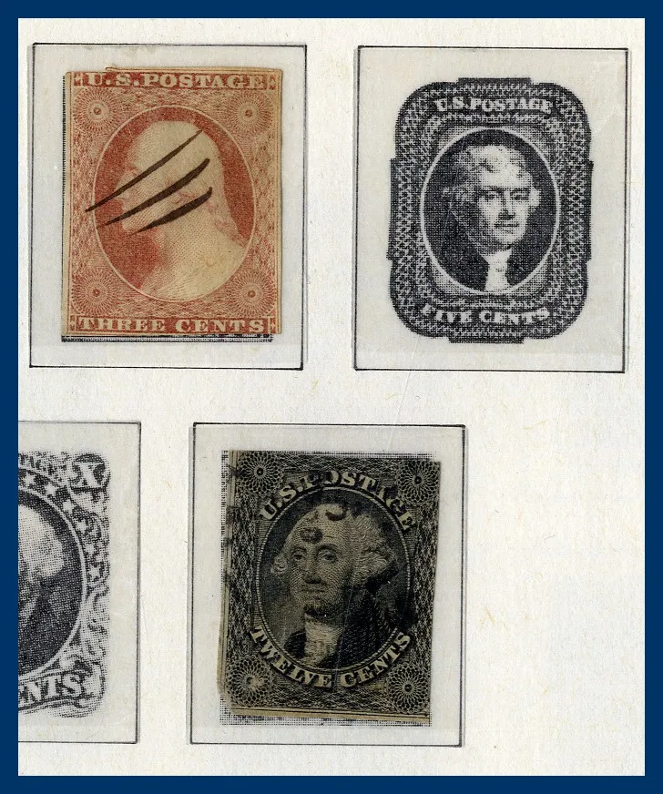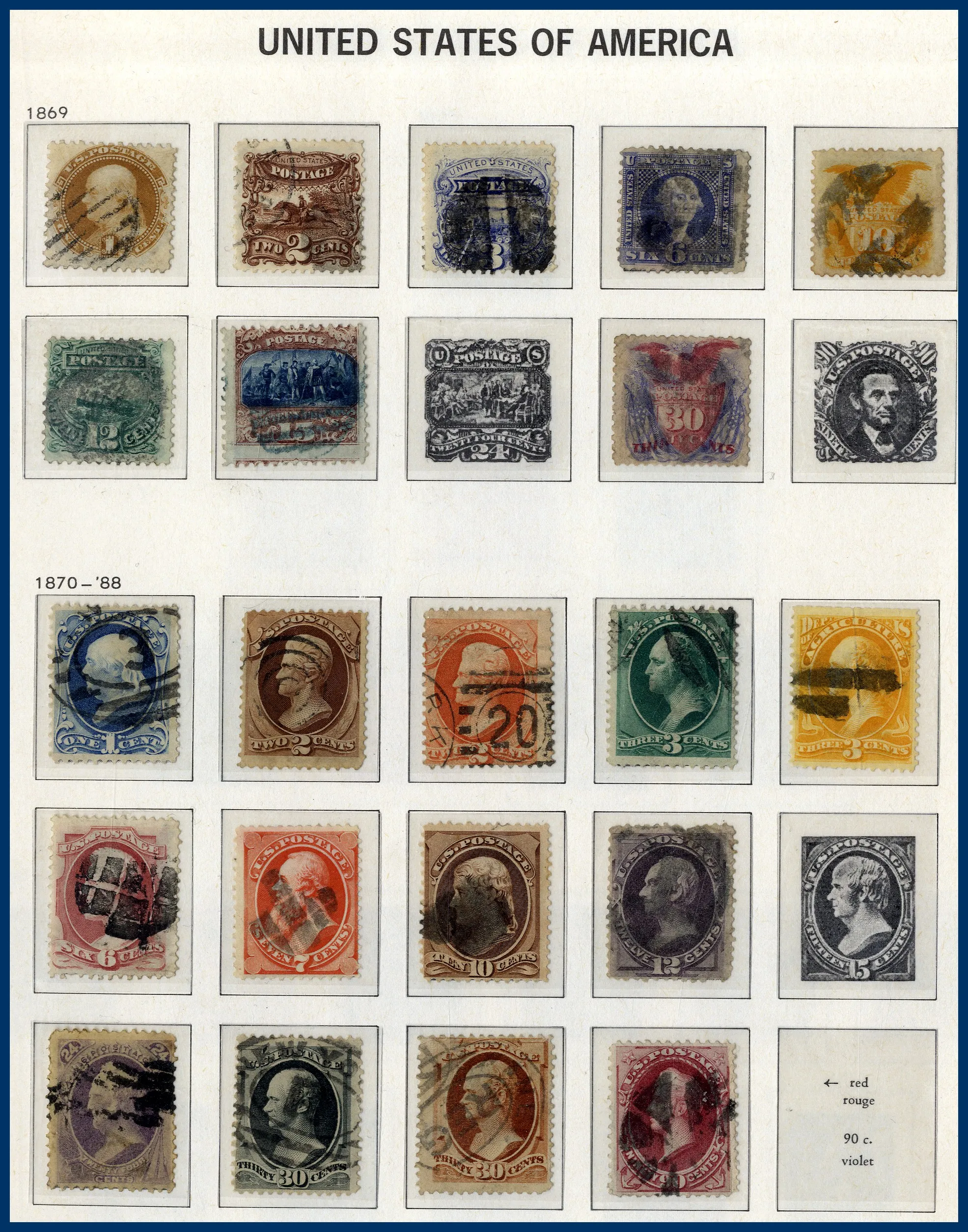 samt mängder av dubbletter i ytterligare 3 album. Bra urval tidiga Presidenter, många tom 30 cent, 1870 till 90 cent, Columbus till 30 cent, Presidenter 1902 till $1 etc. Något blandad kvalitet.
