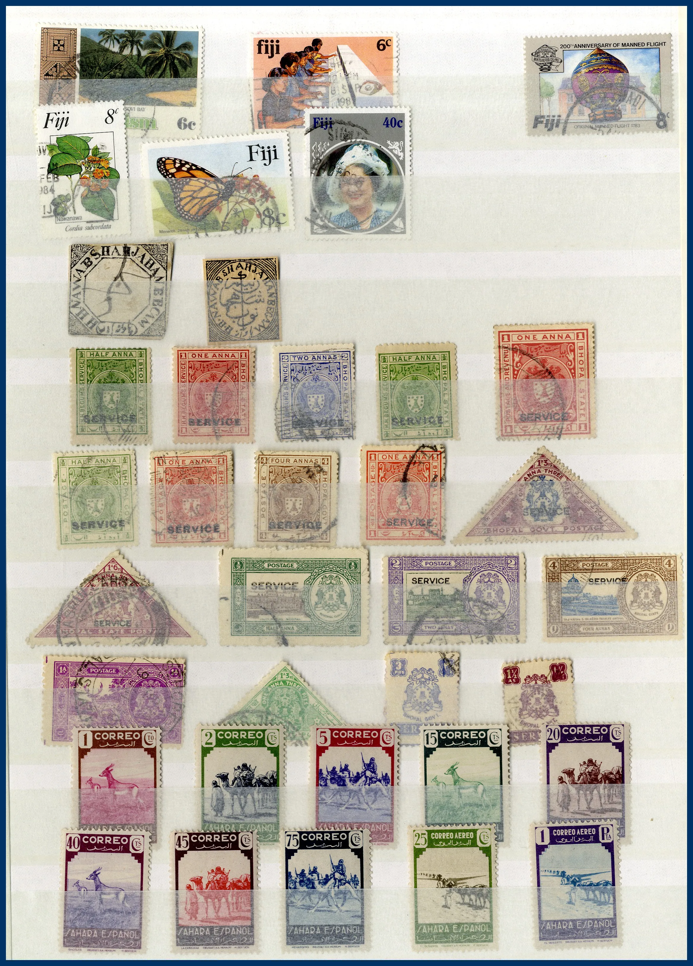spännande låda med mest stämplat. Bl.a. samlingar Belgien, Australien, Indien, Filippinerna, Falklandsöarna, Portugisiska kolonier och Österrike. Flera mindre samlingar kolonier från olika länder m.m. Lite bättre har setts här och där. Sammanfattningsvis en rolig låda att gå igenom för den som samlar hela världen. En del av insticksböckerna har flera tomma blad.