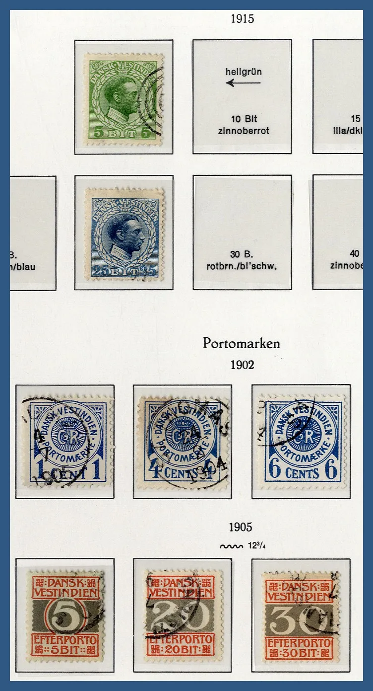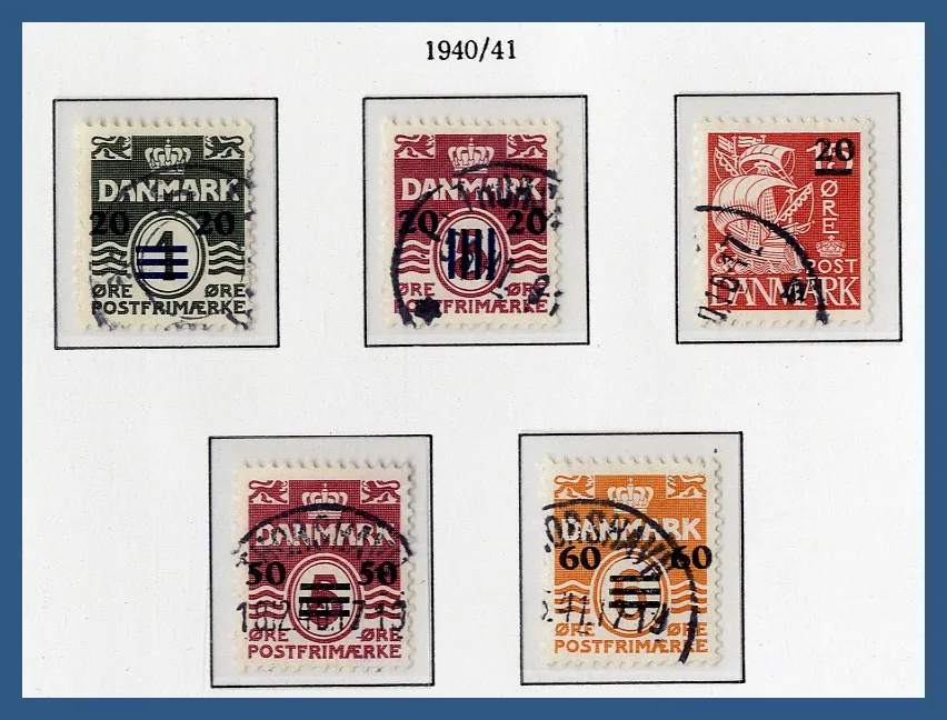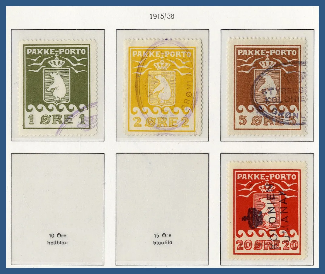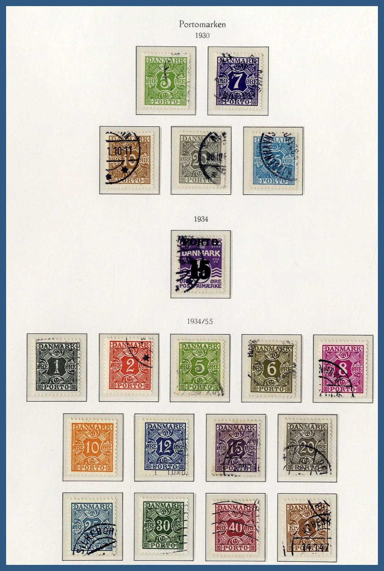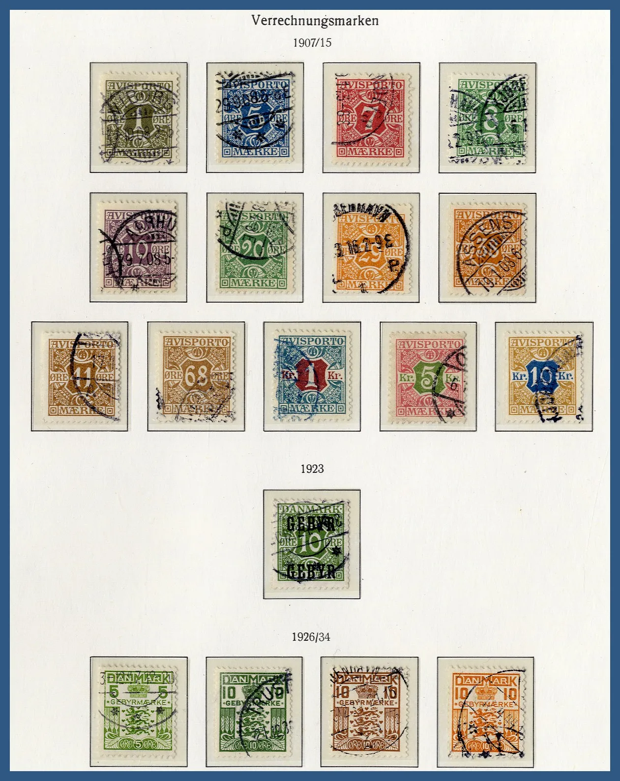 Färöarna i 5 röda KABE-album. Danmark inleds med 16 st skillingmärken. Därefter är samlingen mycket glest besatt t.o.m. 1969, men fr.o.m. 1970 fram till 1999 i det närmaste komplett. Även starka avsnitt Lösen-, Tidnings- och Postfärjemärken. Danska Västindien med en hel del märken, Grönland t.o.m. 1999 med bl a 6 st PAKKEPORTO-märken och komplett serie Olika motiv, Färöarna med F 4-8 (påtryck på danska märken) samt 1975-1999 till synes komplett.