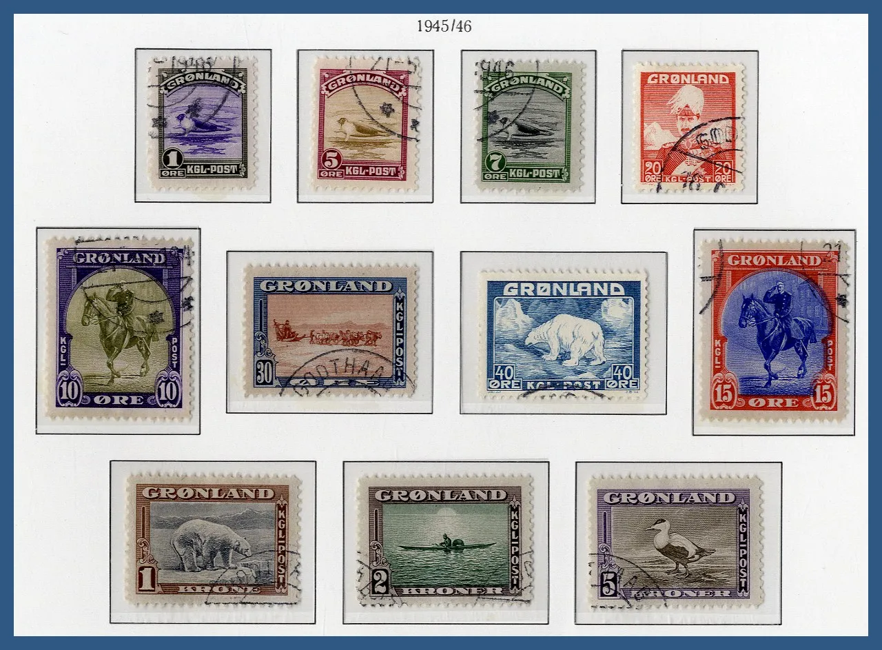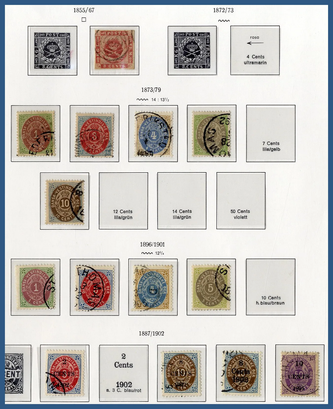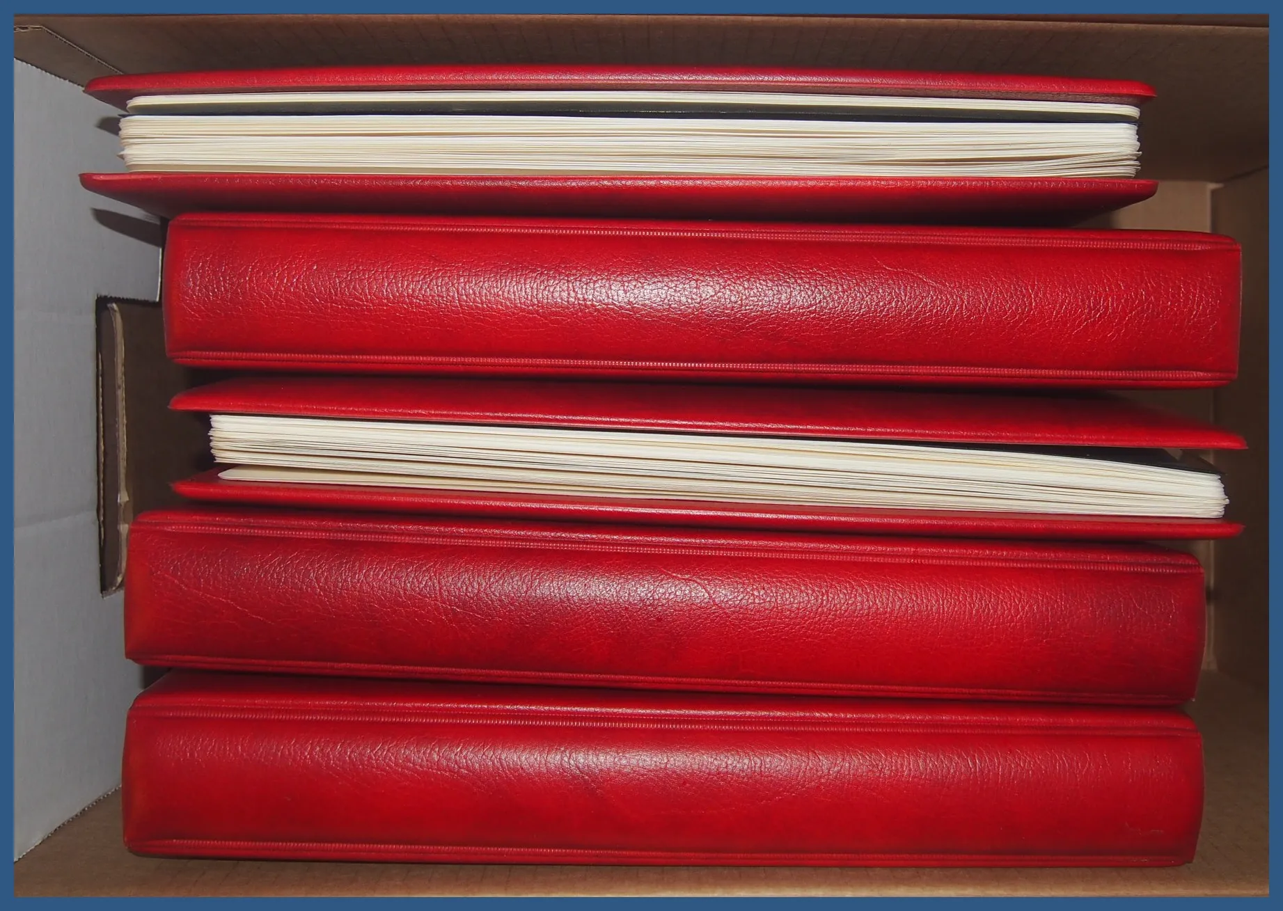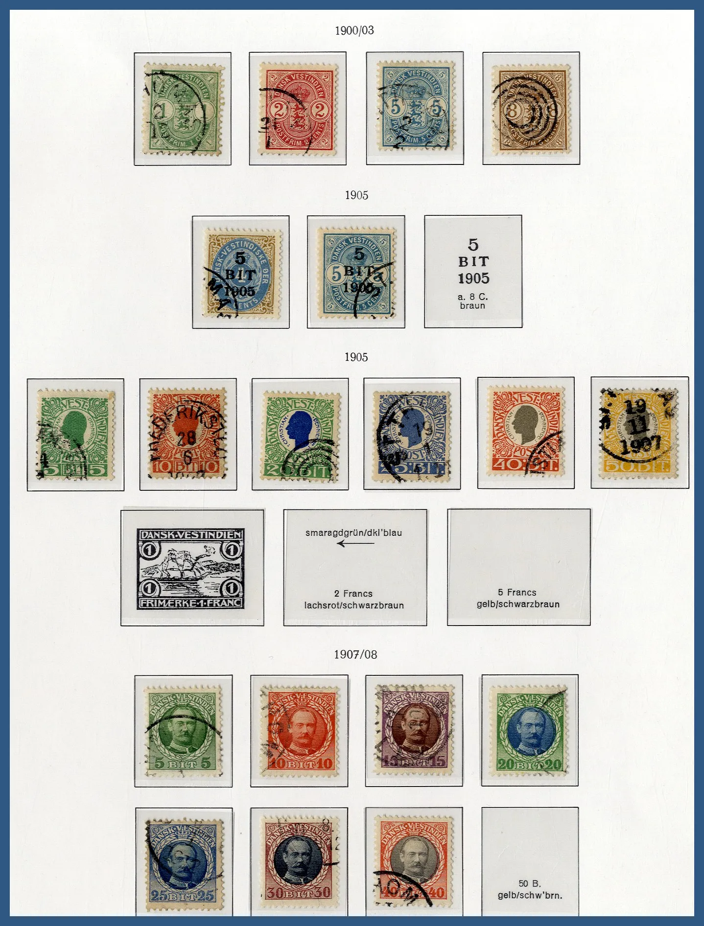 Färöarna i 5 röda KABE-album. Danmark inleds med 16 st skillingmärken. Därefter är samlingen mycket glest besatt t.o.m. 1969, men fr.o.m. 1970 fram till 1999 i det närmaste komplett. Även starka avsnitt Lösen-, Tidnings- och Postfärjemärken. Danska Västindien med en hel del märken, Grönland t.o.m. 1999 med bl a 6 st PAKKEPORTO-märken och komplett serie Olika motiv, Färöarna med F 4-8 (påtryck på danska märken) samt 1975-1999 till synes komplett.
