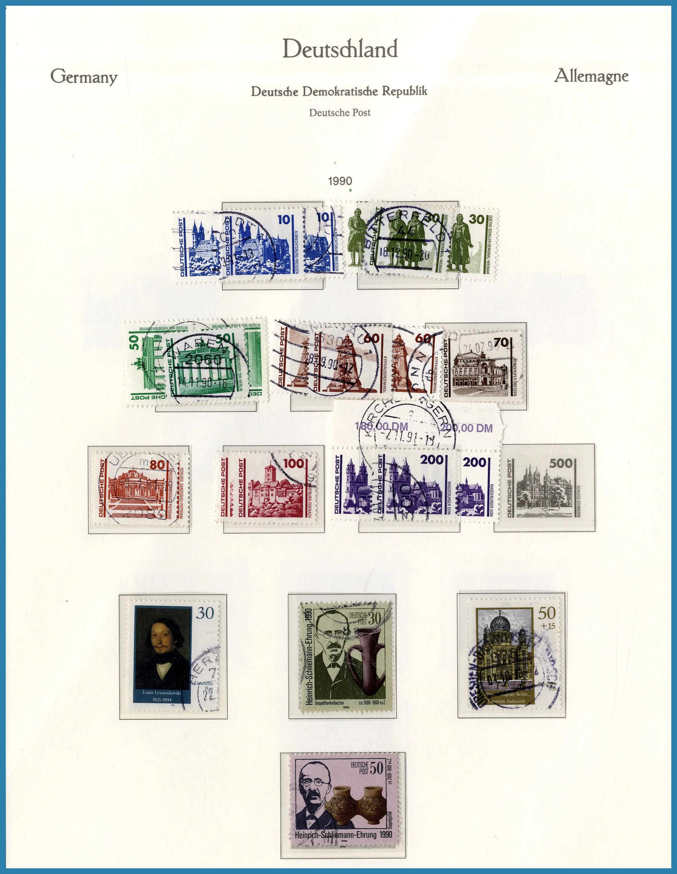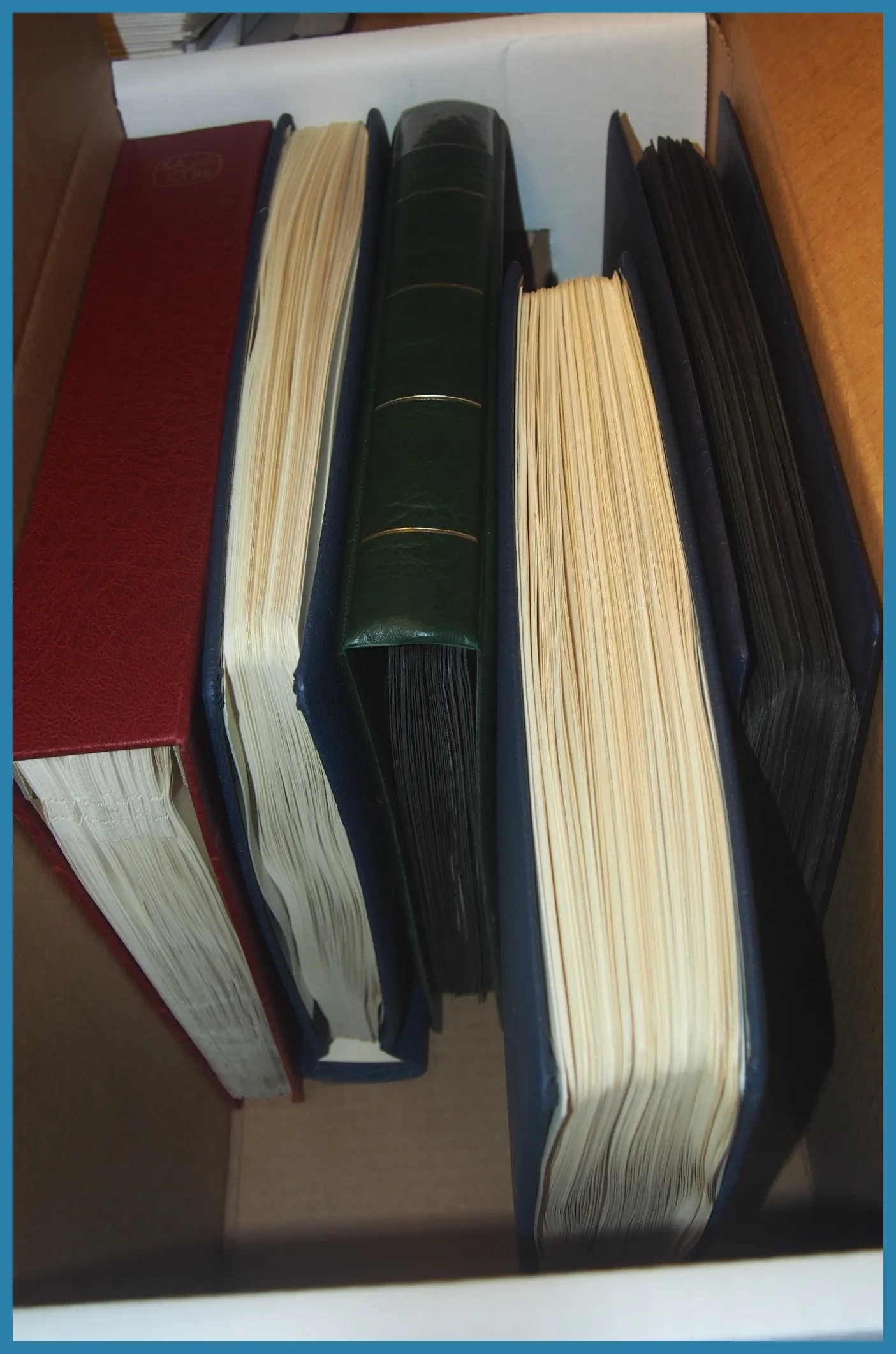 några få i slutet. Monterad i 3 tjocka album, tillkommer 2 visiralbum med massor av stämplade märken. Tjänstemärken ingår ej.