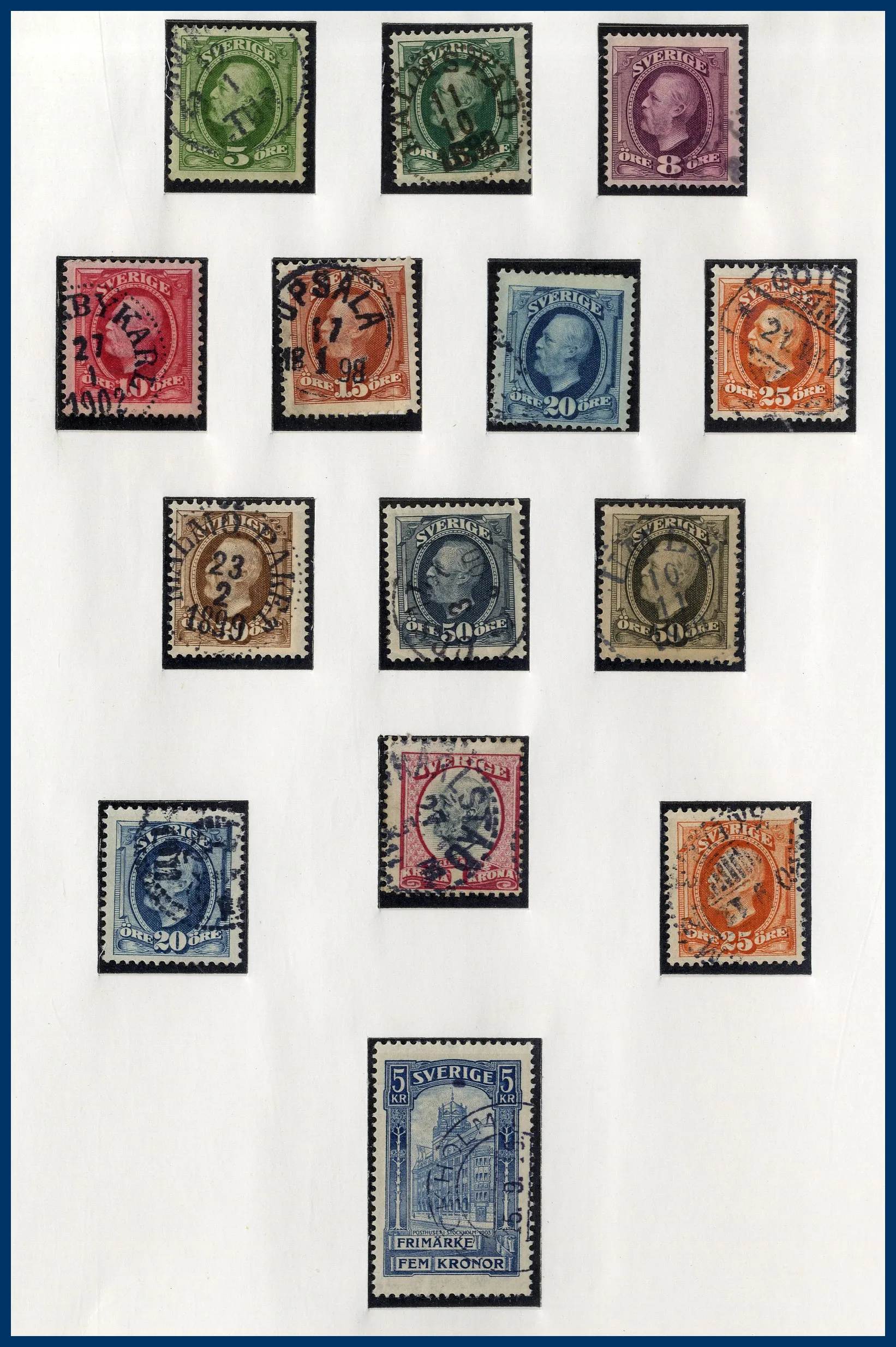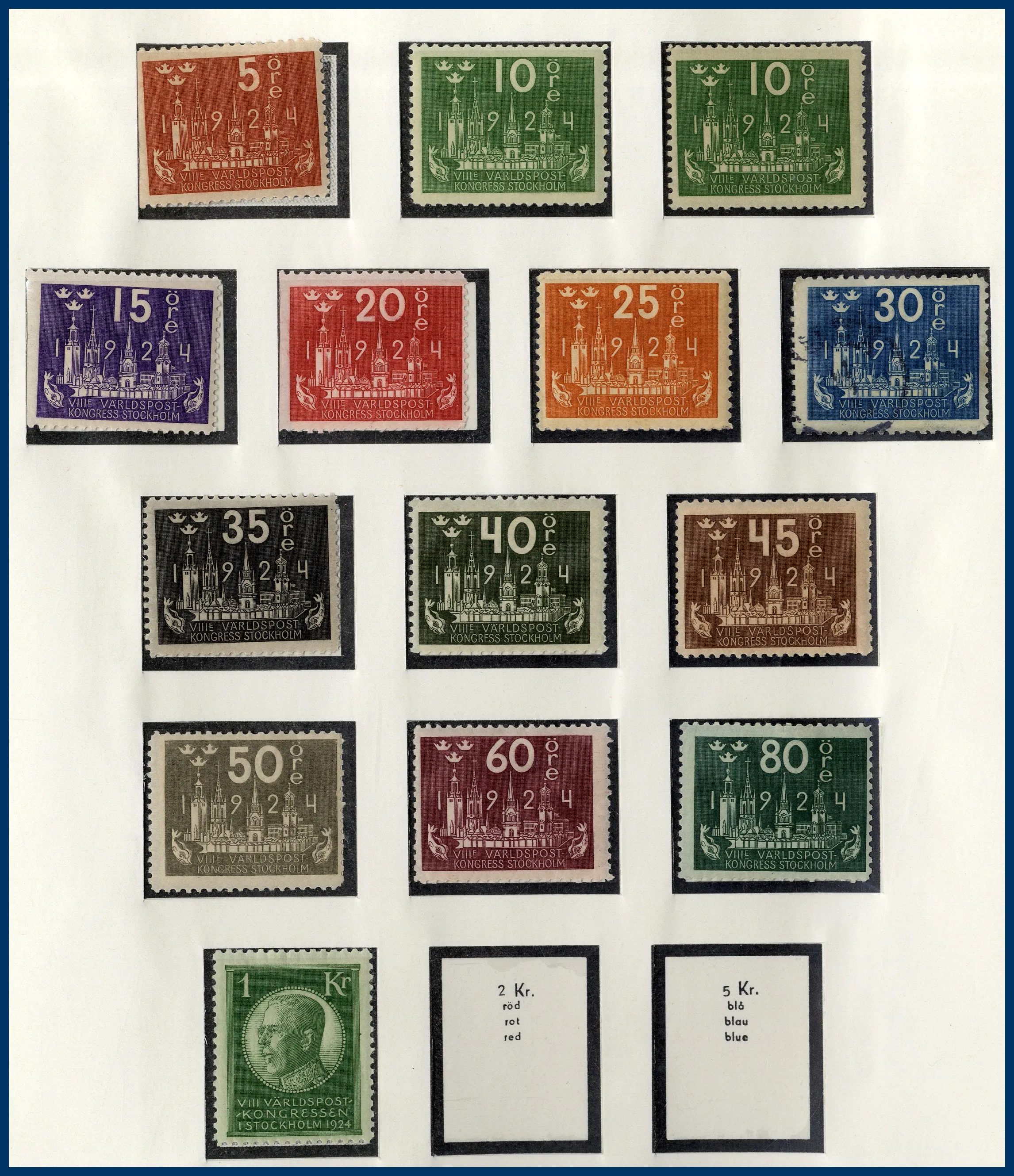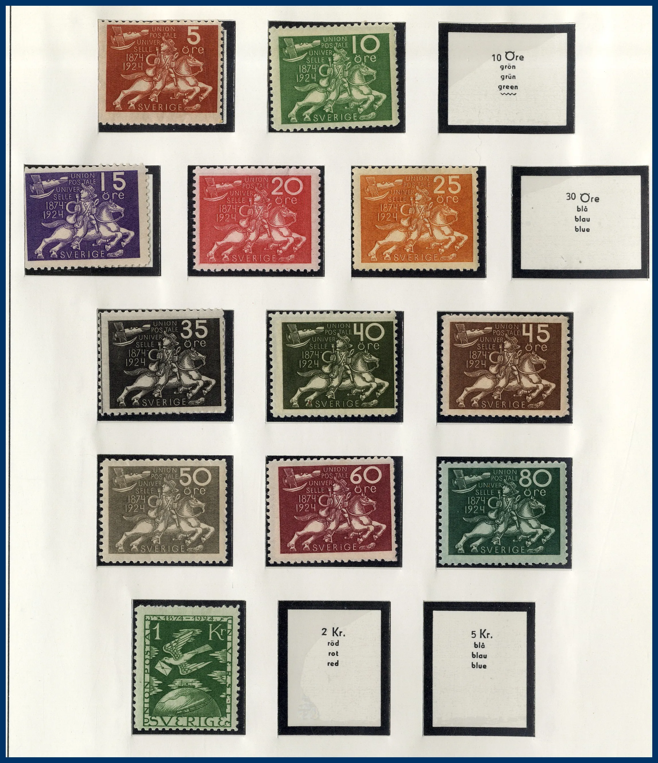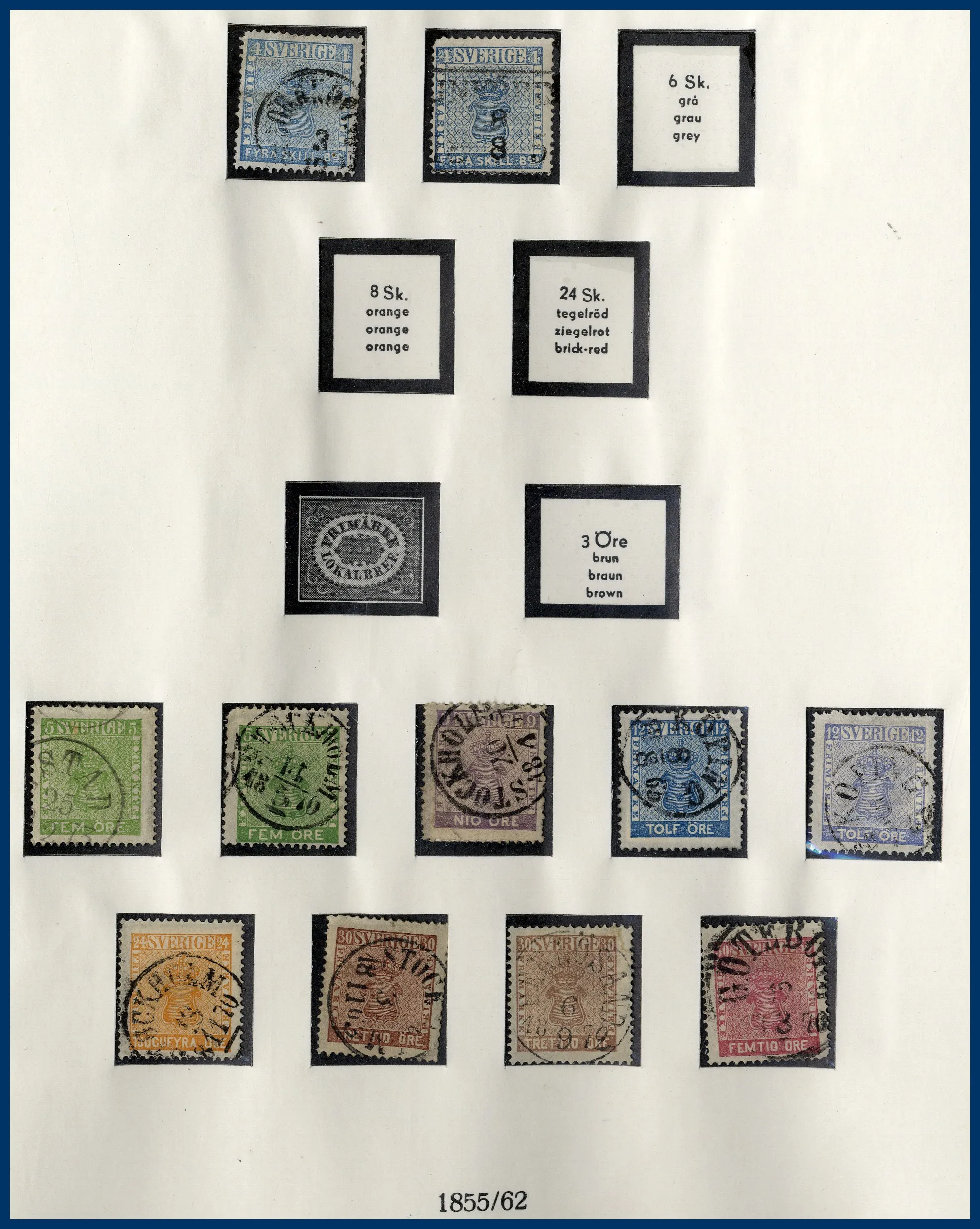 I början stämplat sedan ostämplat **/*, från 1960-talet och framåt idel **. Något blandad kvalitet på de tidigaste märkena. Medföljer också en pärm med häften, äldre till 1970-tal. Nominal i samlingen drygt 3.500 kr (häftena oräknade).