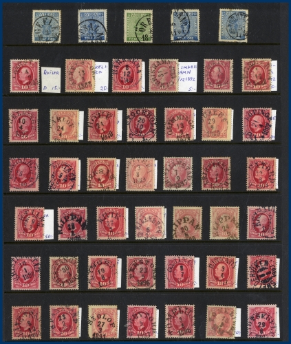 en mängd insticksalbum. Mestadels väldigt ostrukturerat monterat, i stort sett helt utan kronologi eller andra mönster. Vi rekommenderar därför en noggrann genomgång på visningen för här finns en hel del att hitta, såsom ortstämplar, varianter etc. En lite spännande låda.