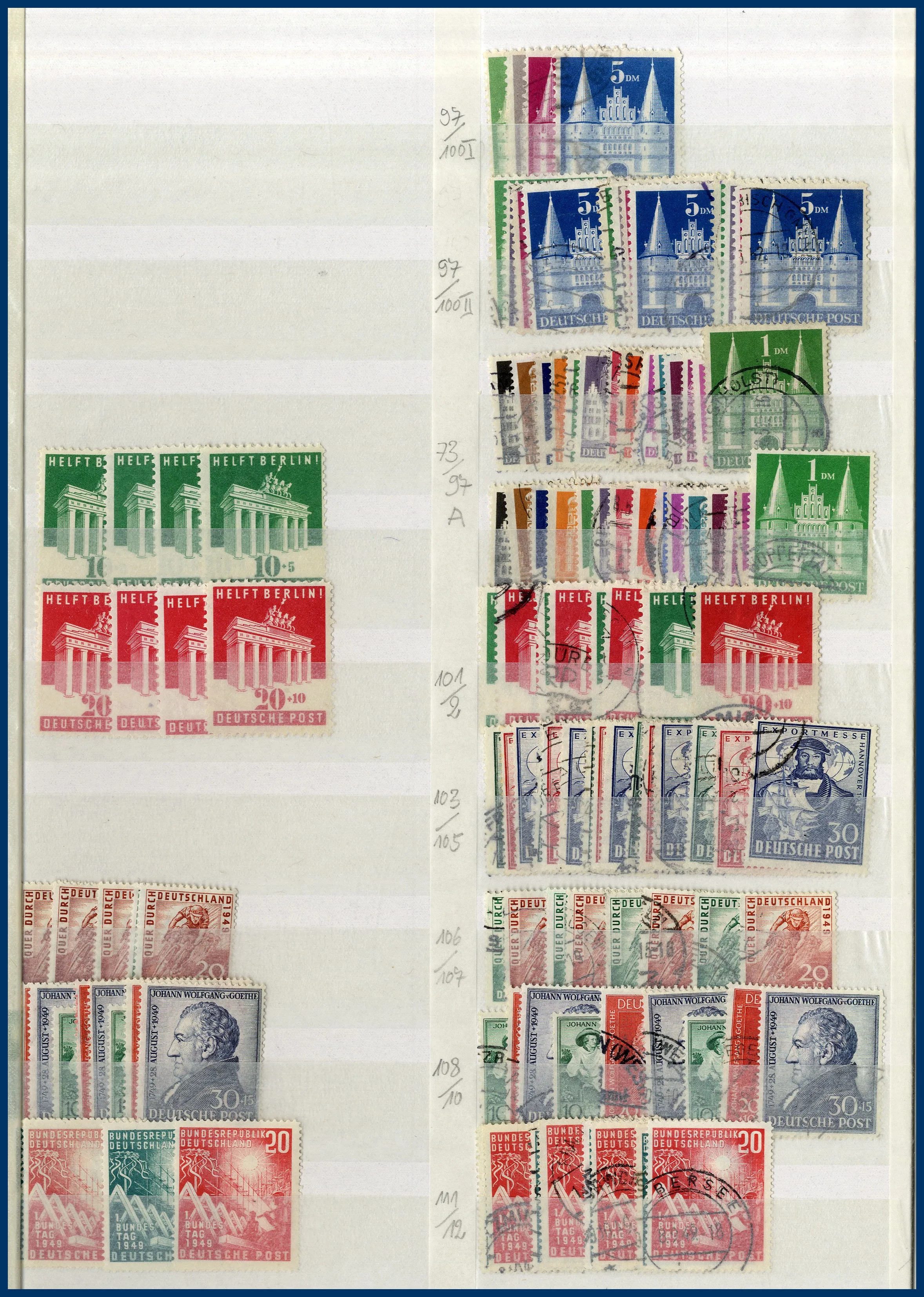 Berlin. Bundes från 1949 till modernt både stämplat och **/*. Enorm mängd frimärken tätt packade i de flesta av insticksböckerna.