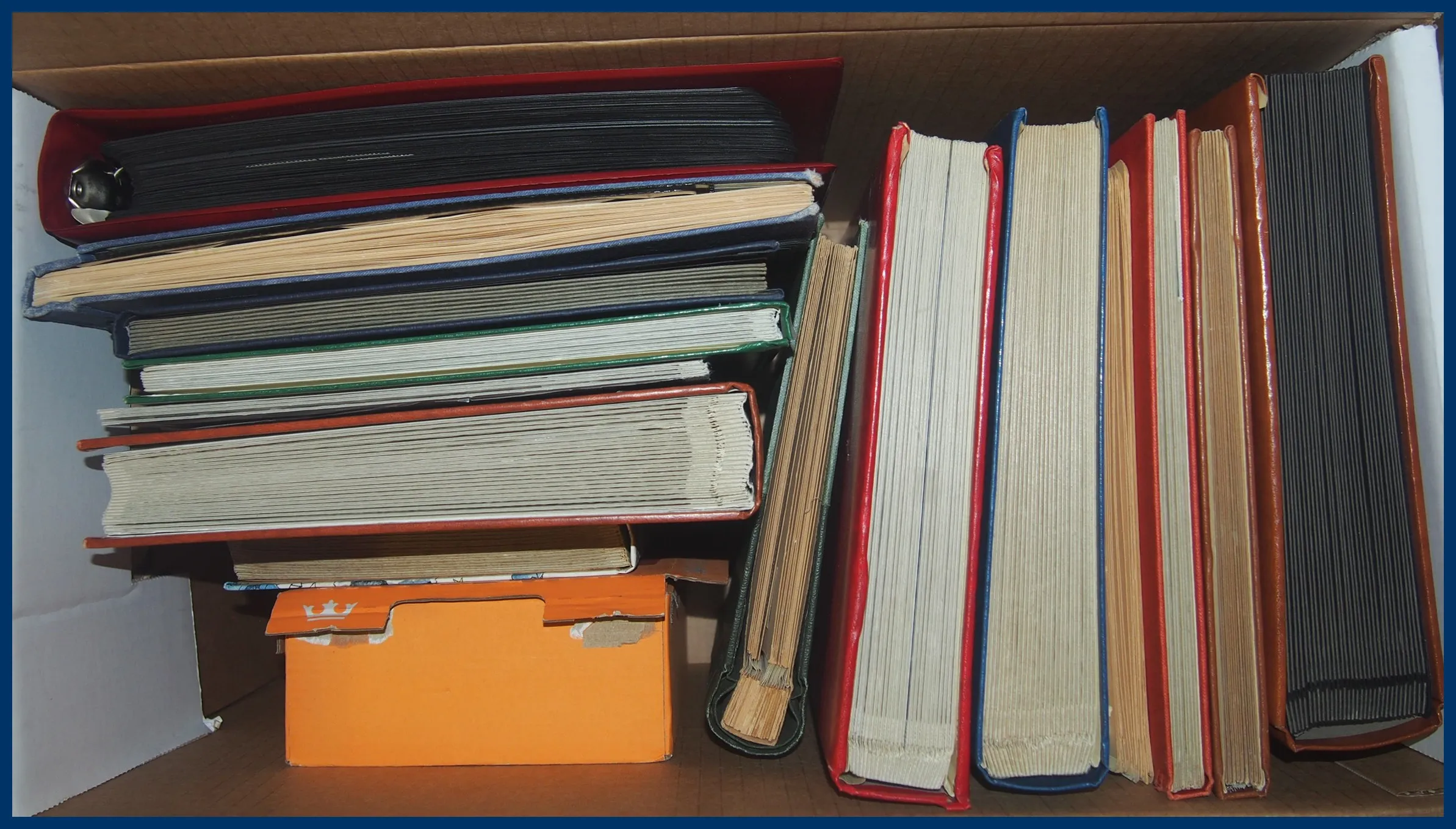 326. (F) Välfylld flyttlåda hela världen i en mängd album samt