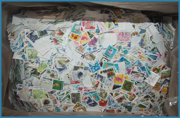 57. (FF) Drygt 10 kg tvättade osorterade frimärken från