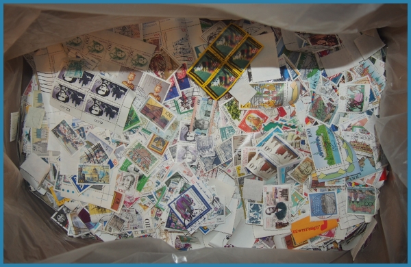 55. (FF) Drygt 11 kg tvättade osorterade frimärken från