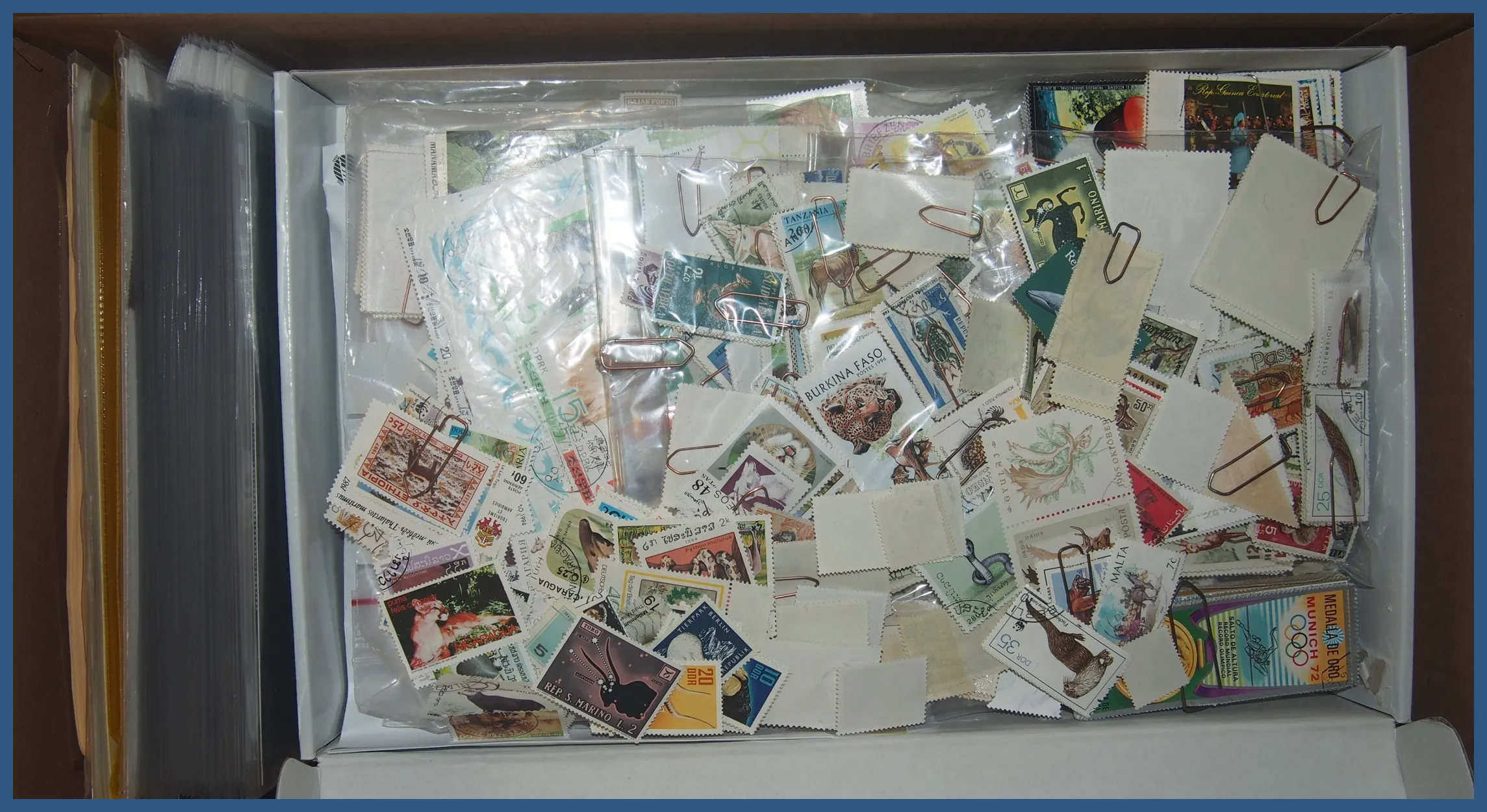 220. (FF) Frimärken Hela världen löst i lådor och plastfickor