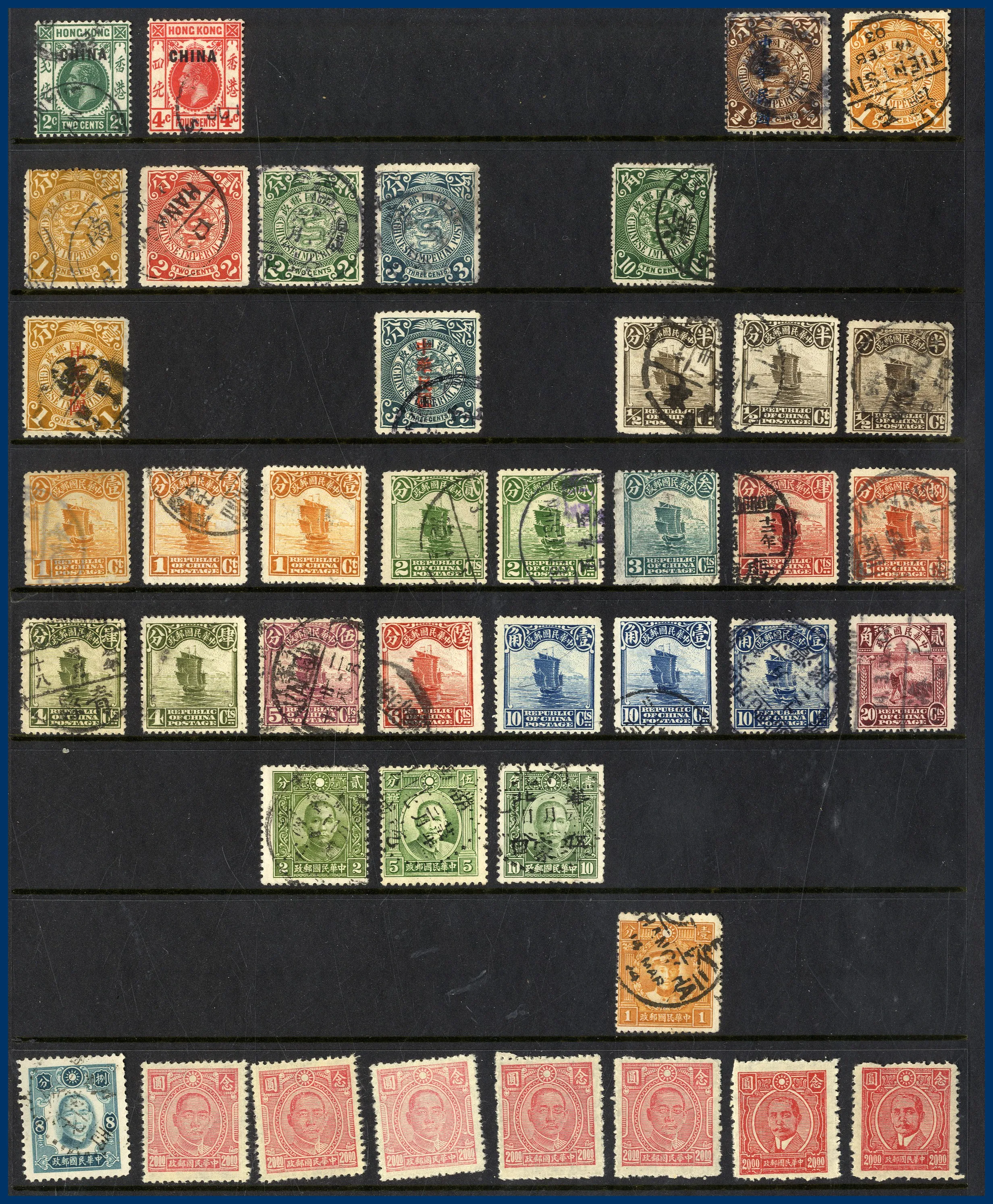 ingår ett specialalbum Hongkong ** 2002-2003, Kina ** årssatser 1991-2000 (två ex av den sista), Sydkorea årssatser 2002, 2005 och 2006 samt en årsbok 2002, ett välfyllt visiralbum Kina **/* (lite stämplat inemellan) äldre till modernt och även lite Taiwan och Manchuriet. Vidare finns några album med blandat Asien (bl a många nordkoreanska block och mycket Mongoliet), 4 album med försändelser, en bunt pergamynkuvert med märken sorterade landsvis samt lite annat.