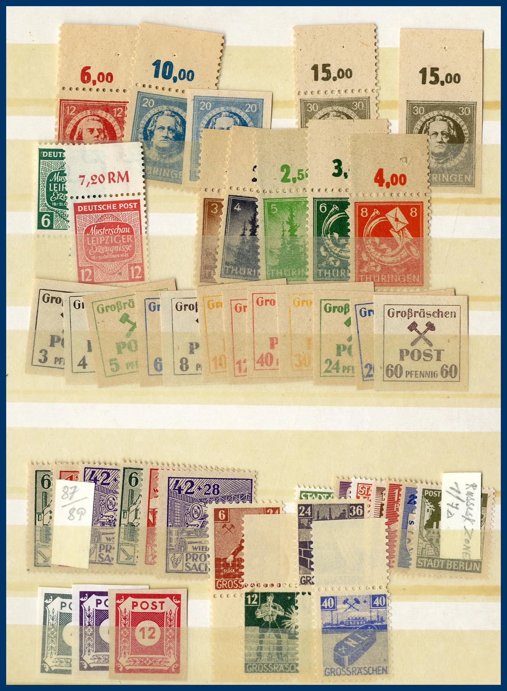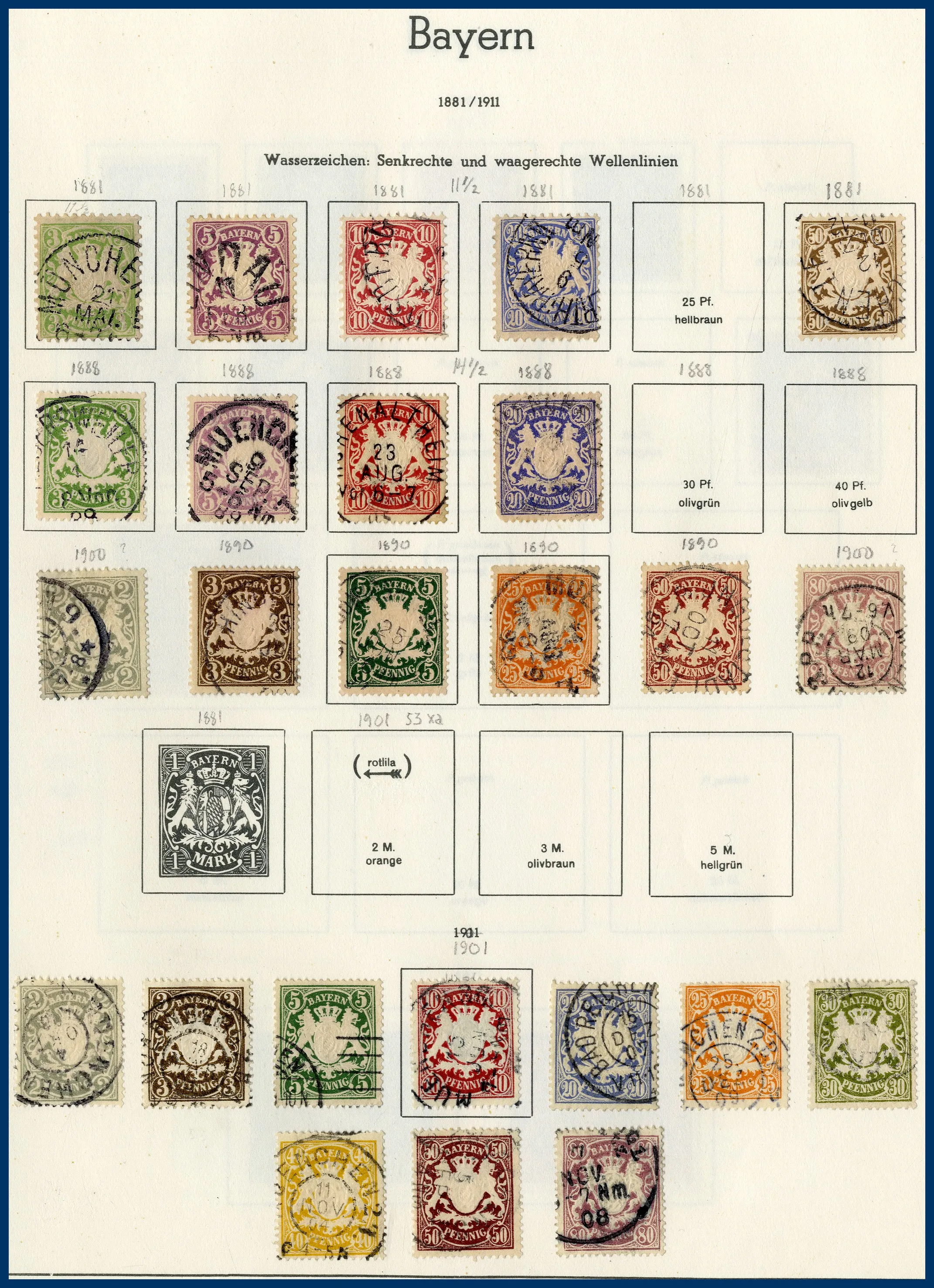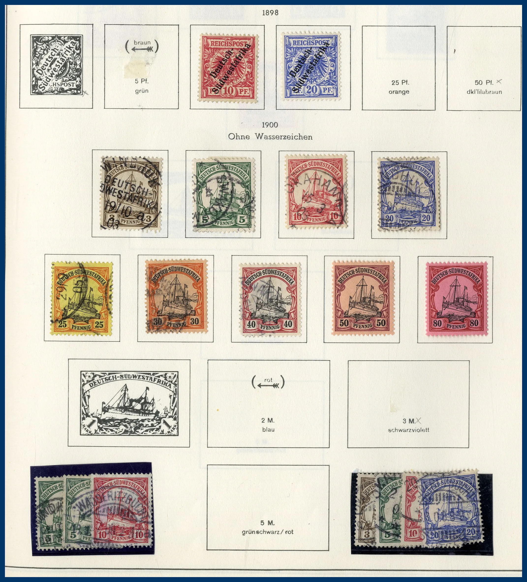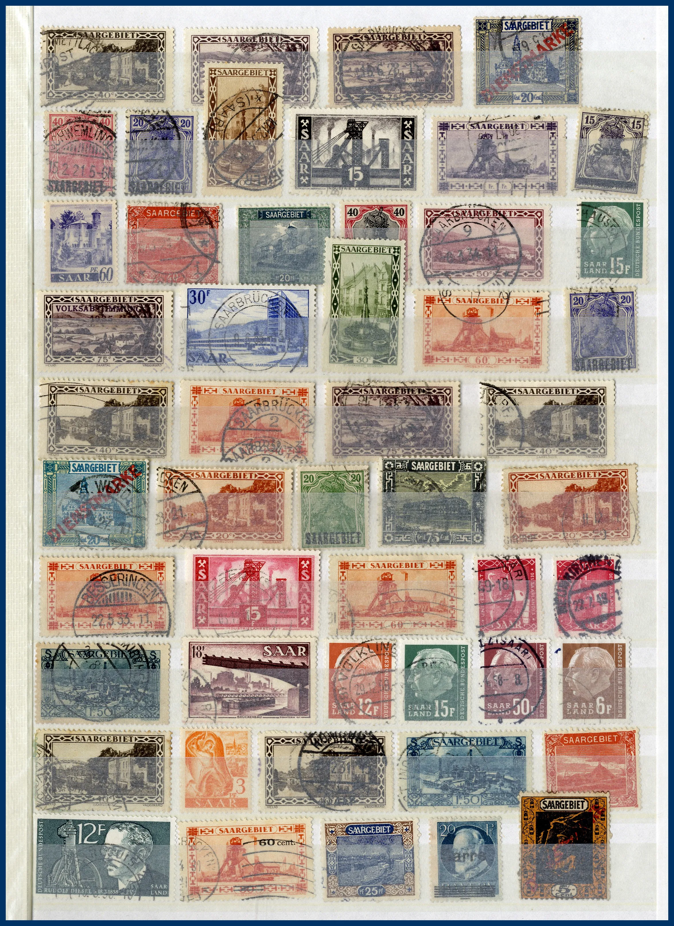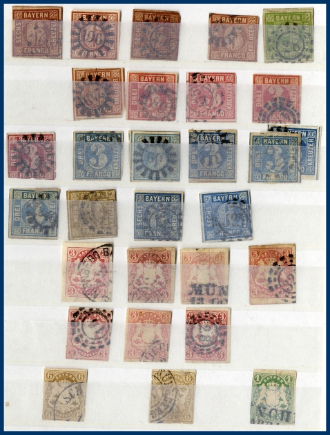 urvalshäften och på en bunt lösblad. Många olika områden representerade med bl a mycket Bayern och Saar. Flera av albumen är lite glest besatta, ändå totalt sett stor mängd märken.