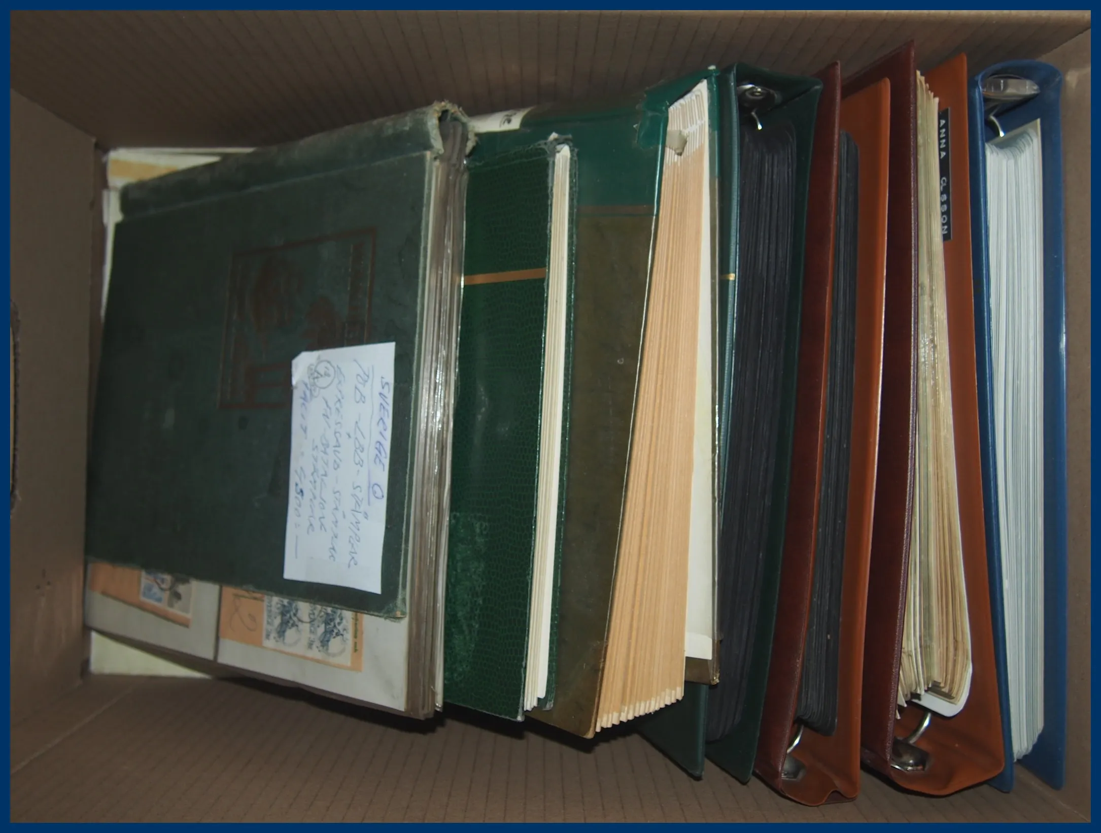 469. (FF) Stor flyttlåda med 7 album och 2 lådor. Ortsstämplar med