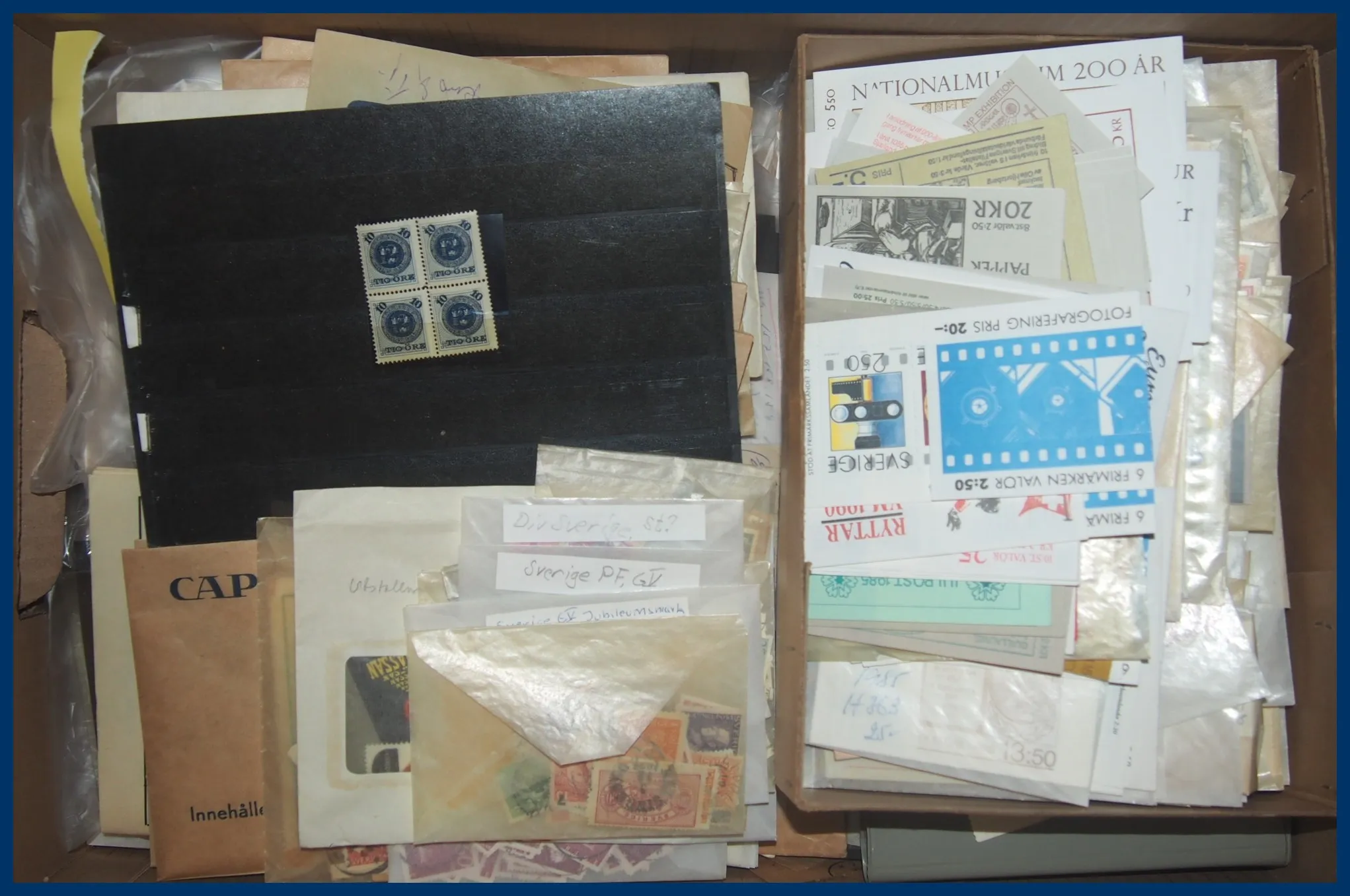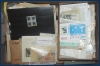 558. (FF) Stor flyttlåda med botten fylld av äldre klipp, överst