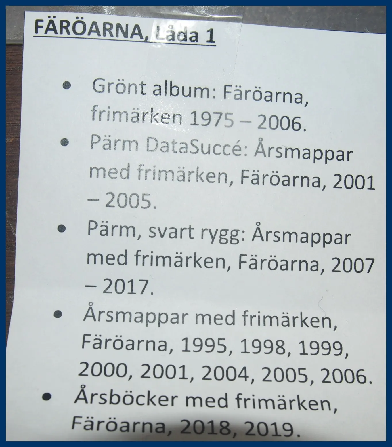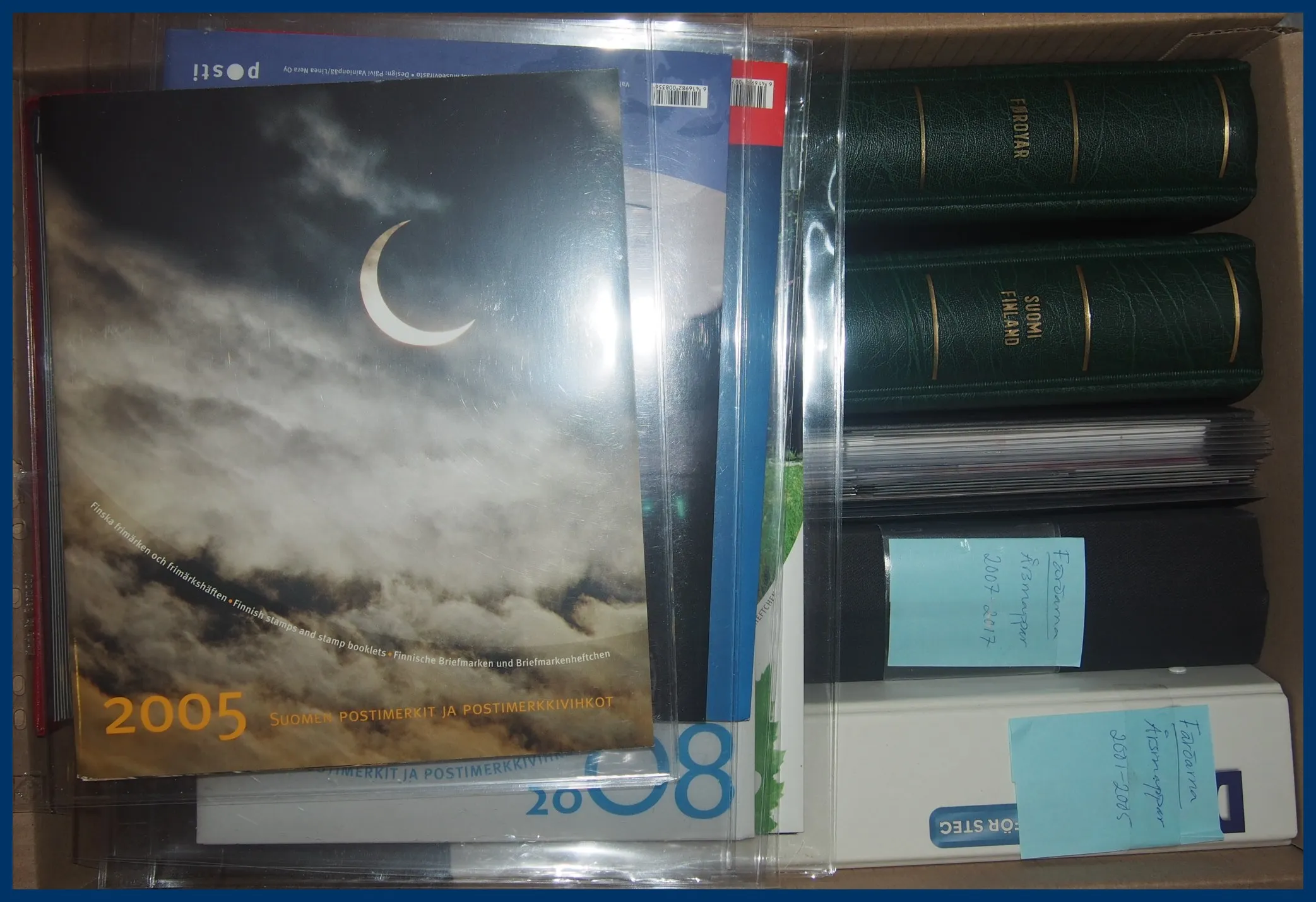 231. (FF) Stor flyttlåda med material från Finland och Färöarna.