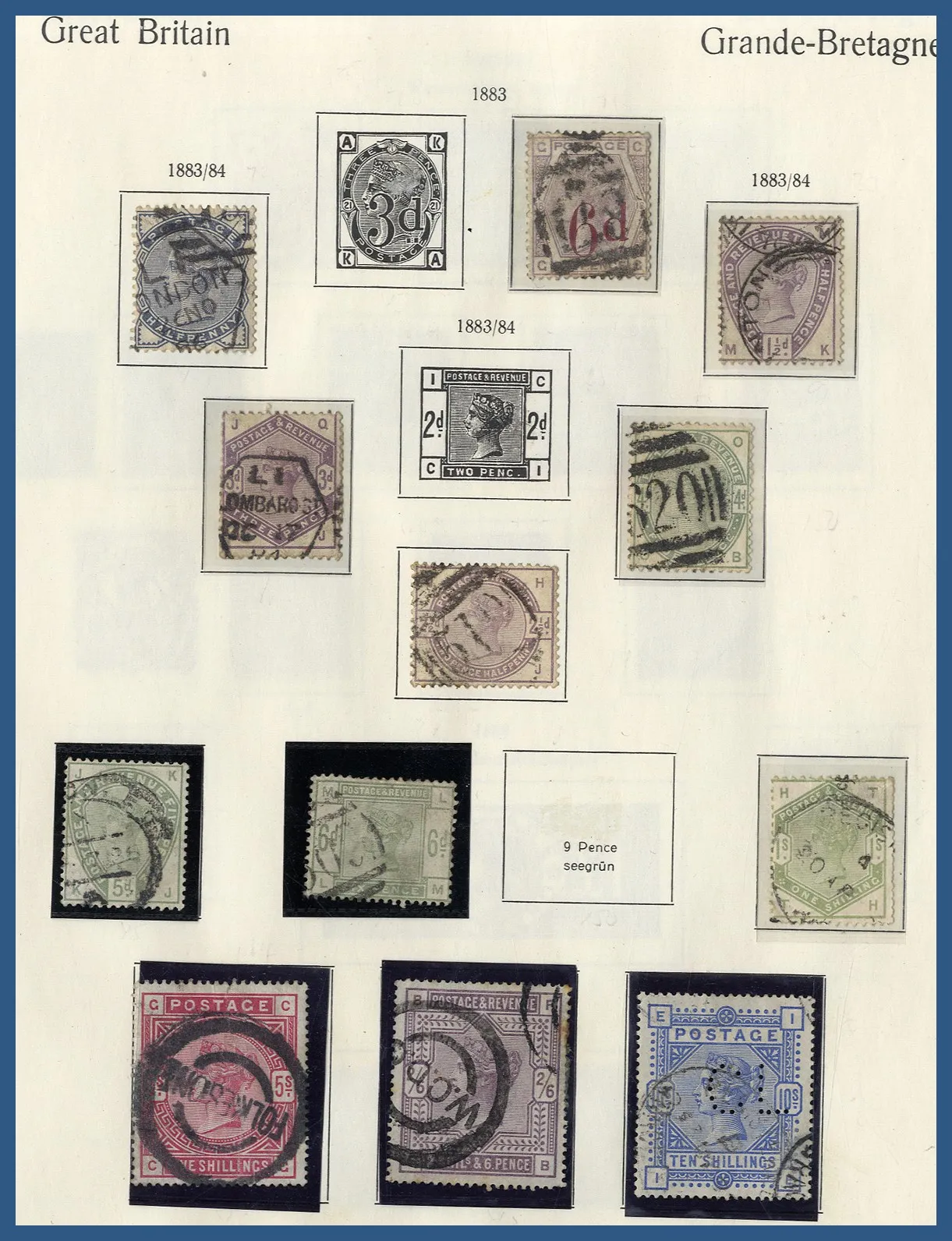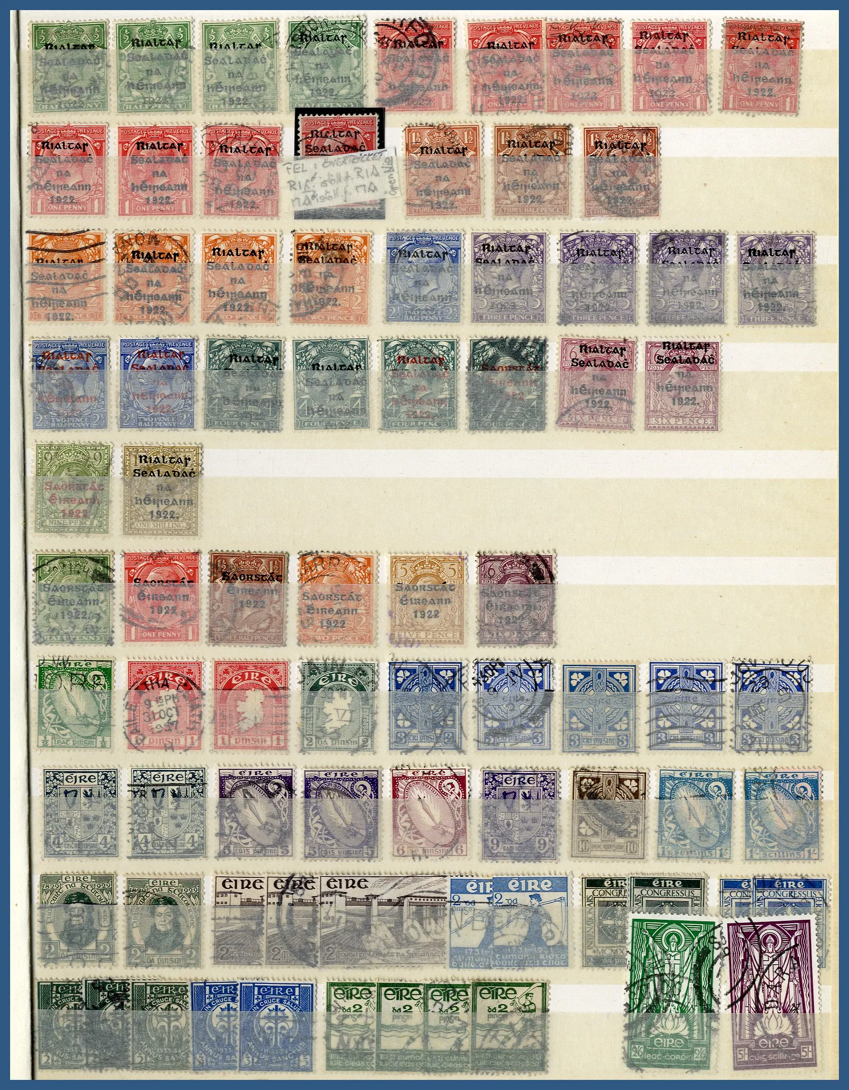 Irland i ett antal album och i mängder av pergamynkuvert. En hel del klassiskt material inkl. två st one penny black (plus ett luckfyllarex). Mest stämplat, men ostämplade märken förekommer.