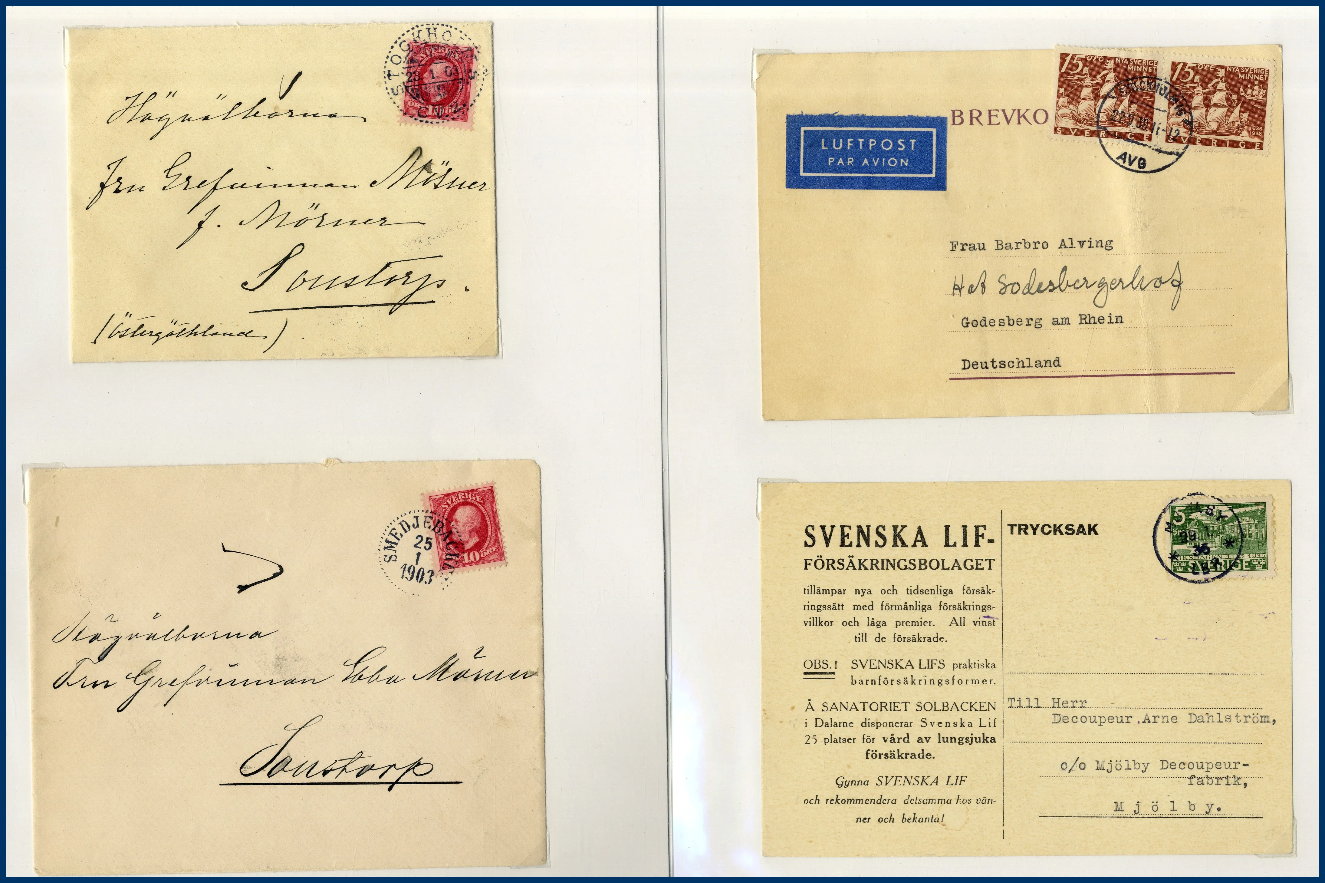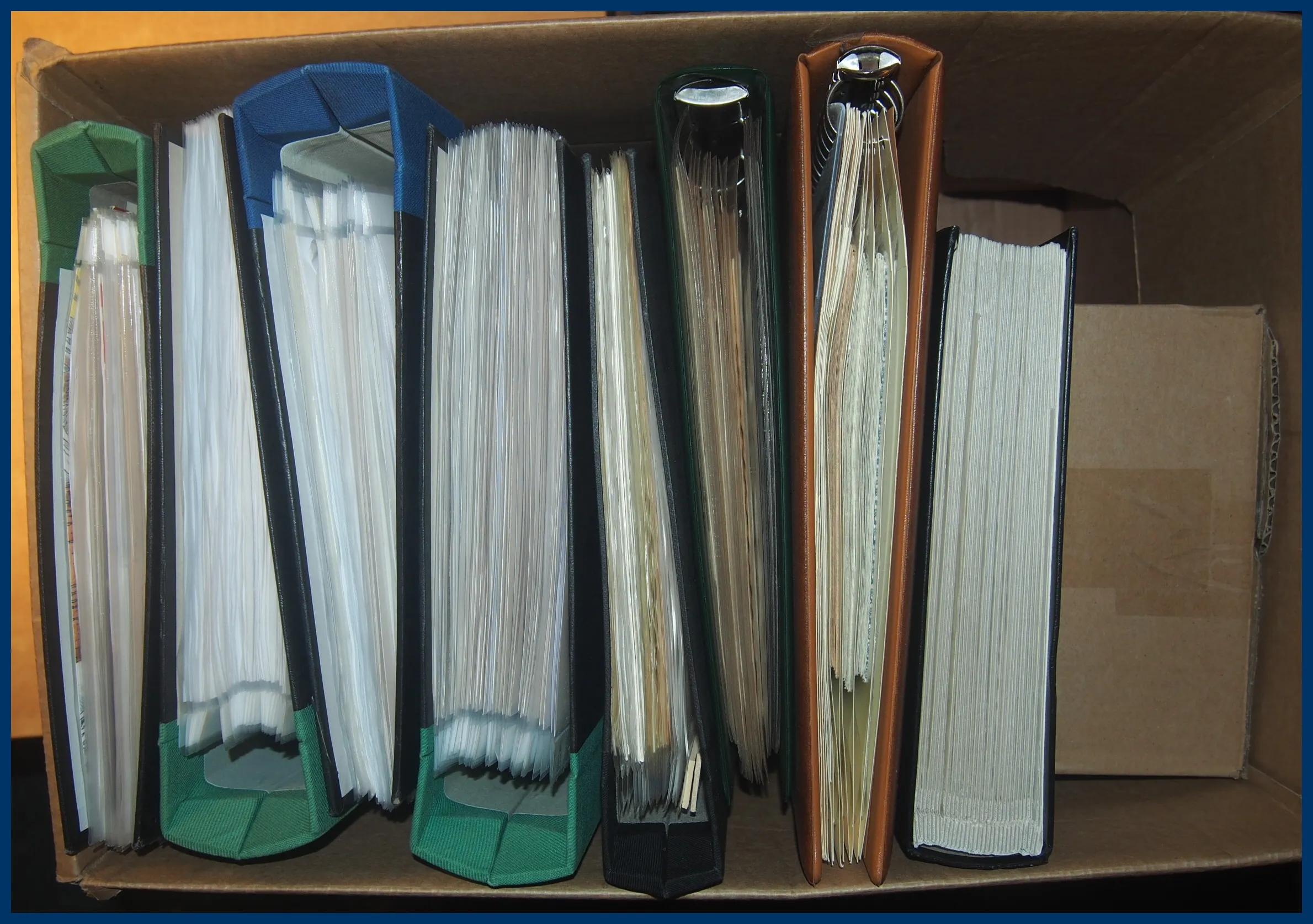 262. (FF) Stor flyttlåda svenska försändelser i 8 st kontorspärmar