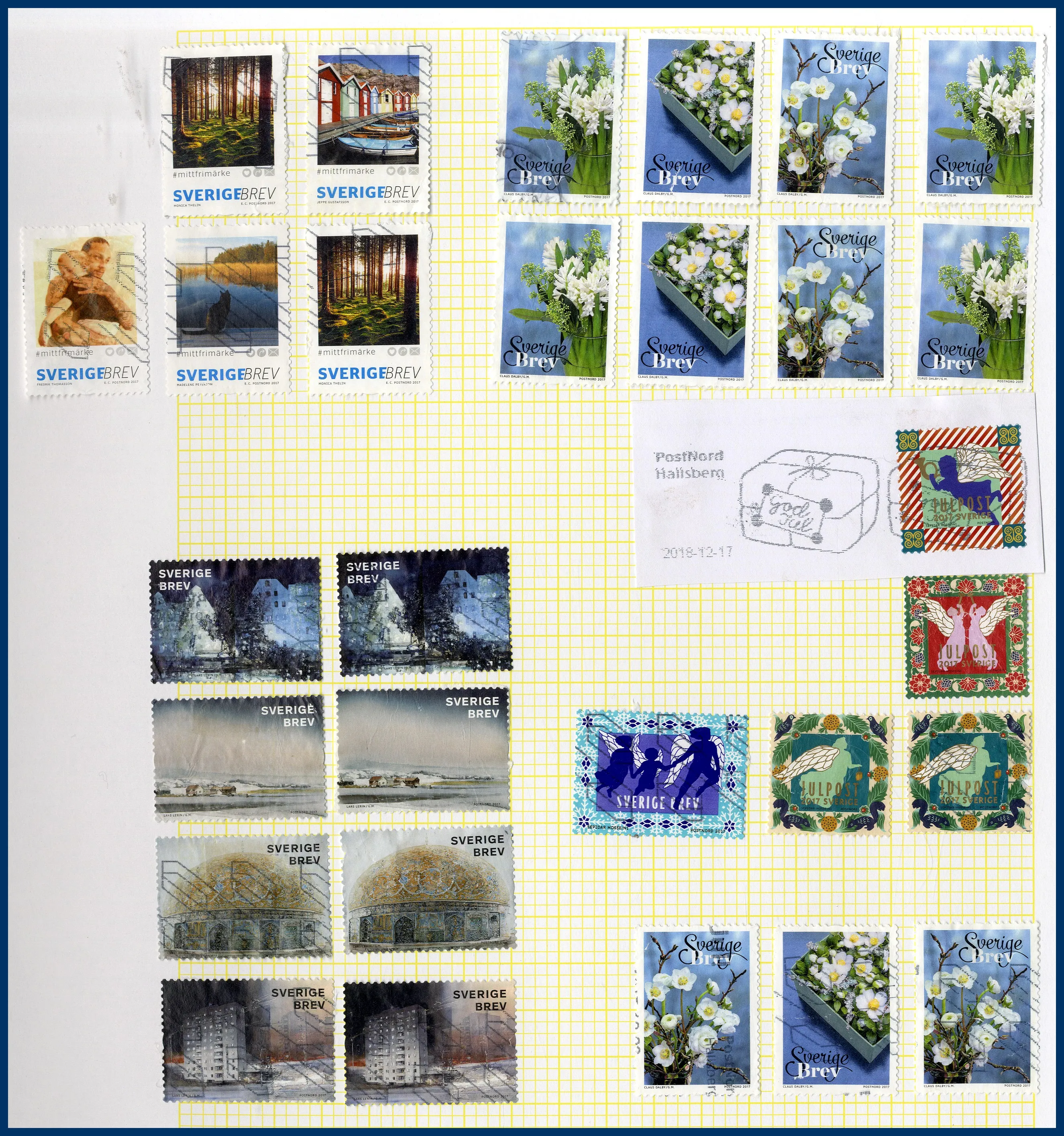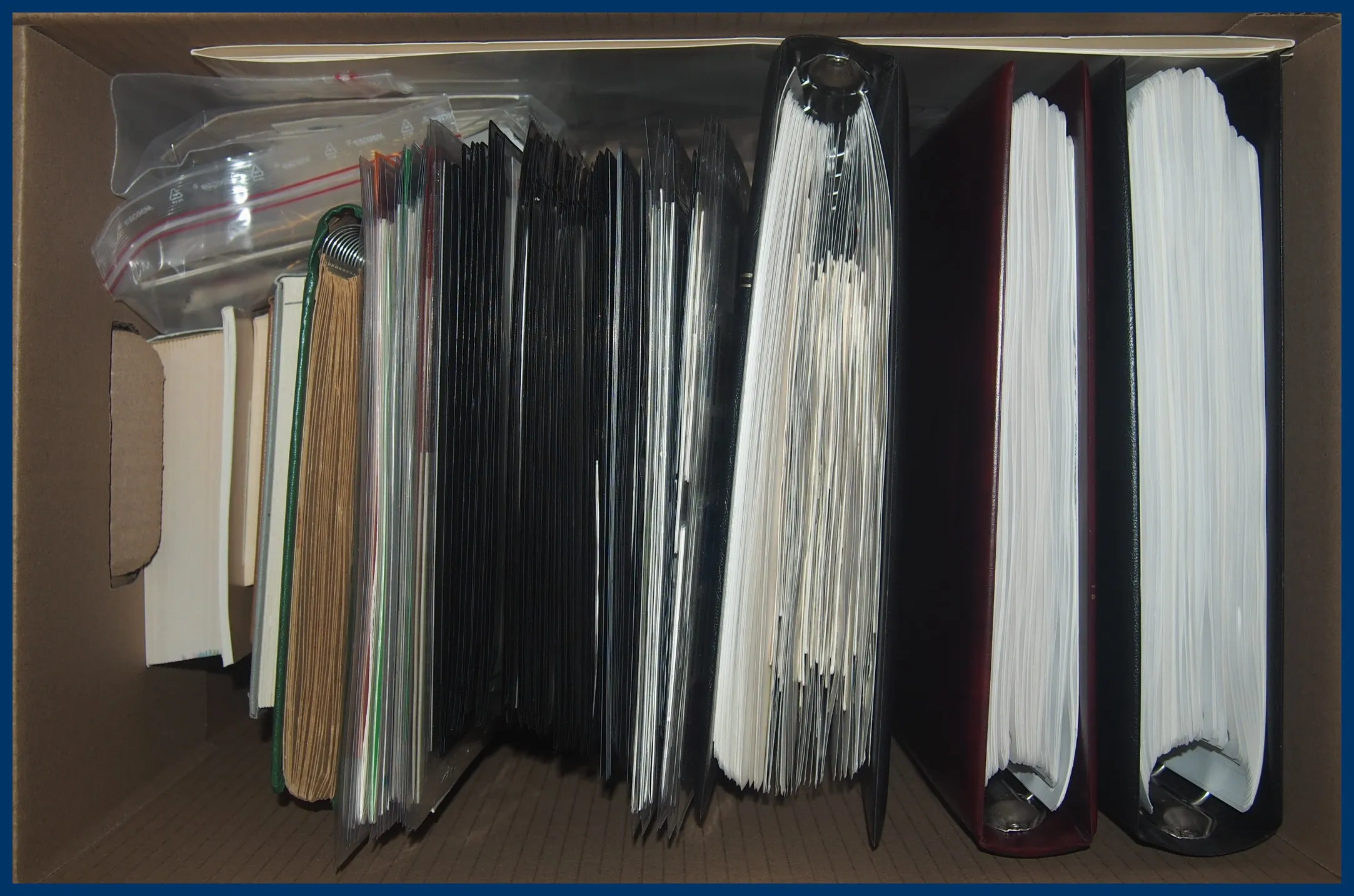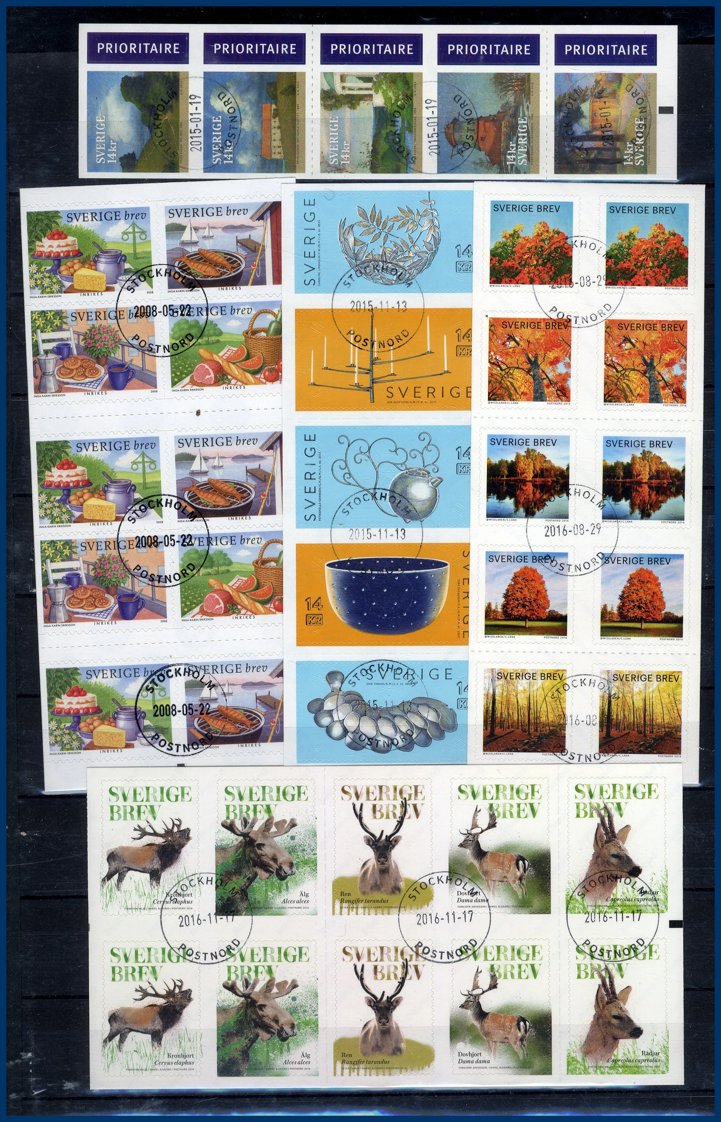 339. (FF) Stor flyttlåda Sverige stämplat i 4 album + lösa blad