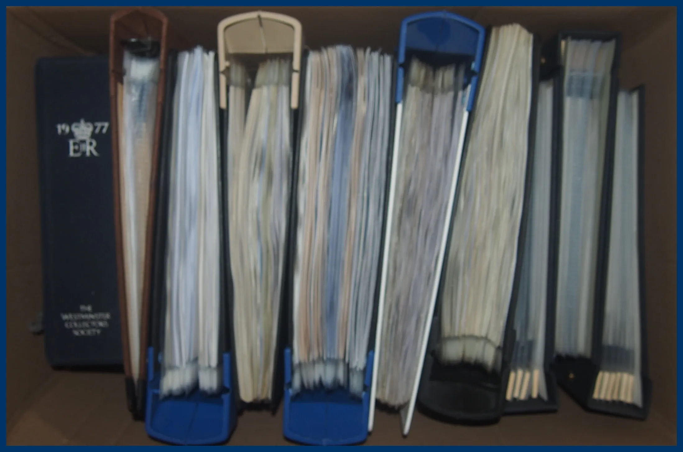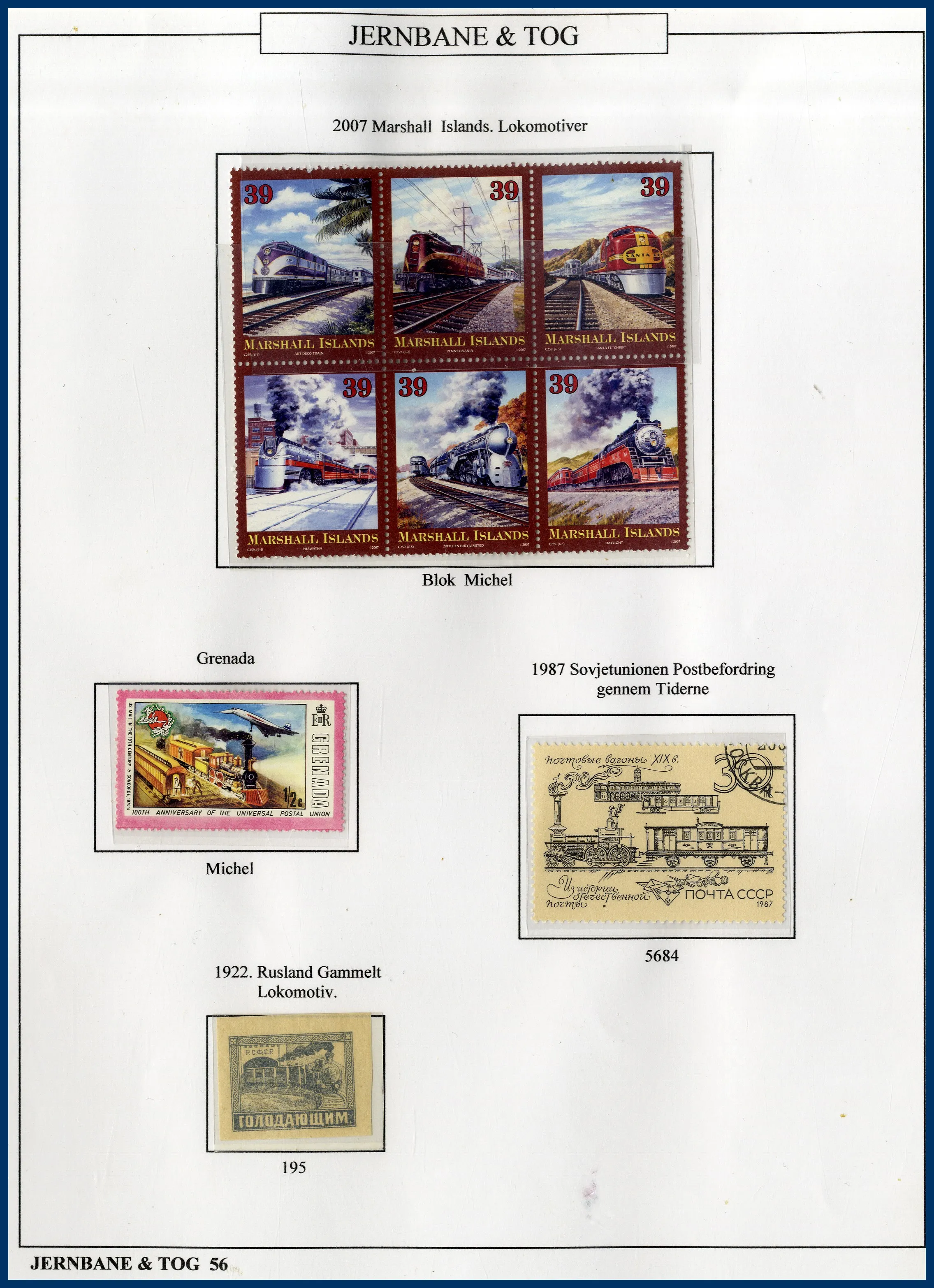 Frimärken, vykort (mest nya formatet), brev, tidningsurklipp mm. Till denna post hör också en mapp "Top of the World of Stamps", ett påkostat album "The Queen's Silver Jubilee" från 1977, tre pärmar Färöarna FDC samt en pärm med bilder med tillhörande text om fartygsolyckor, främst Andrea Doria. I slutet av denna pärm även lite ryska frimärken, oftast med järnvägsmotiv.