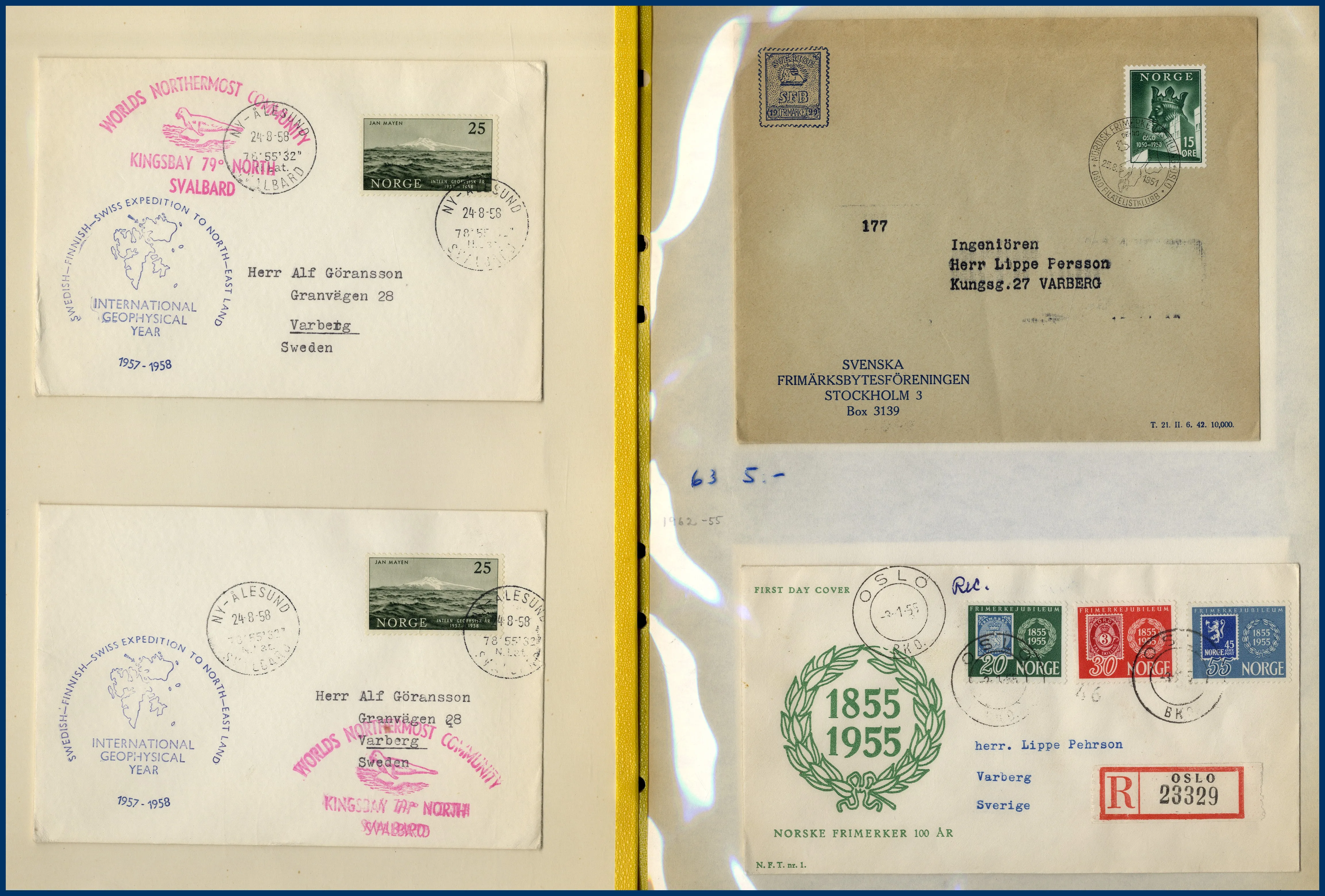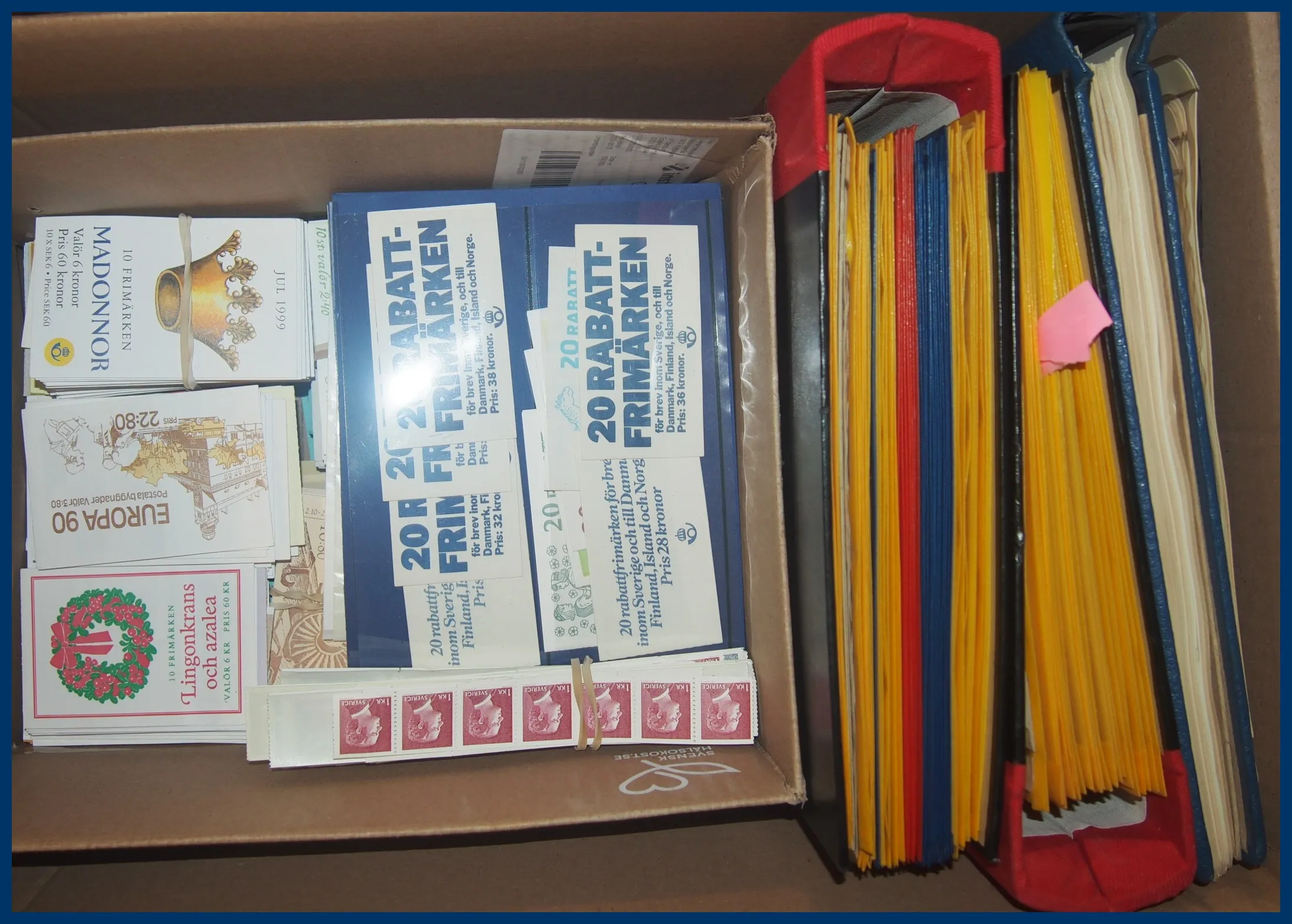 svenska FDC fram till 2008 samt diverse Sverige och Norden i 2 kontorspärmar och på en bunt lösa blad. Sverige ** Nominal ca 18.000 kr + 10 rabatthäften.