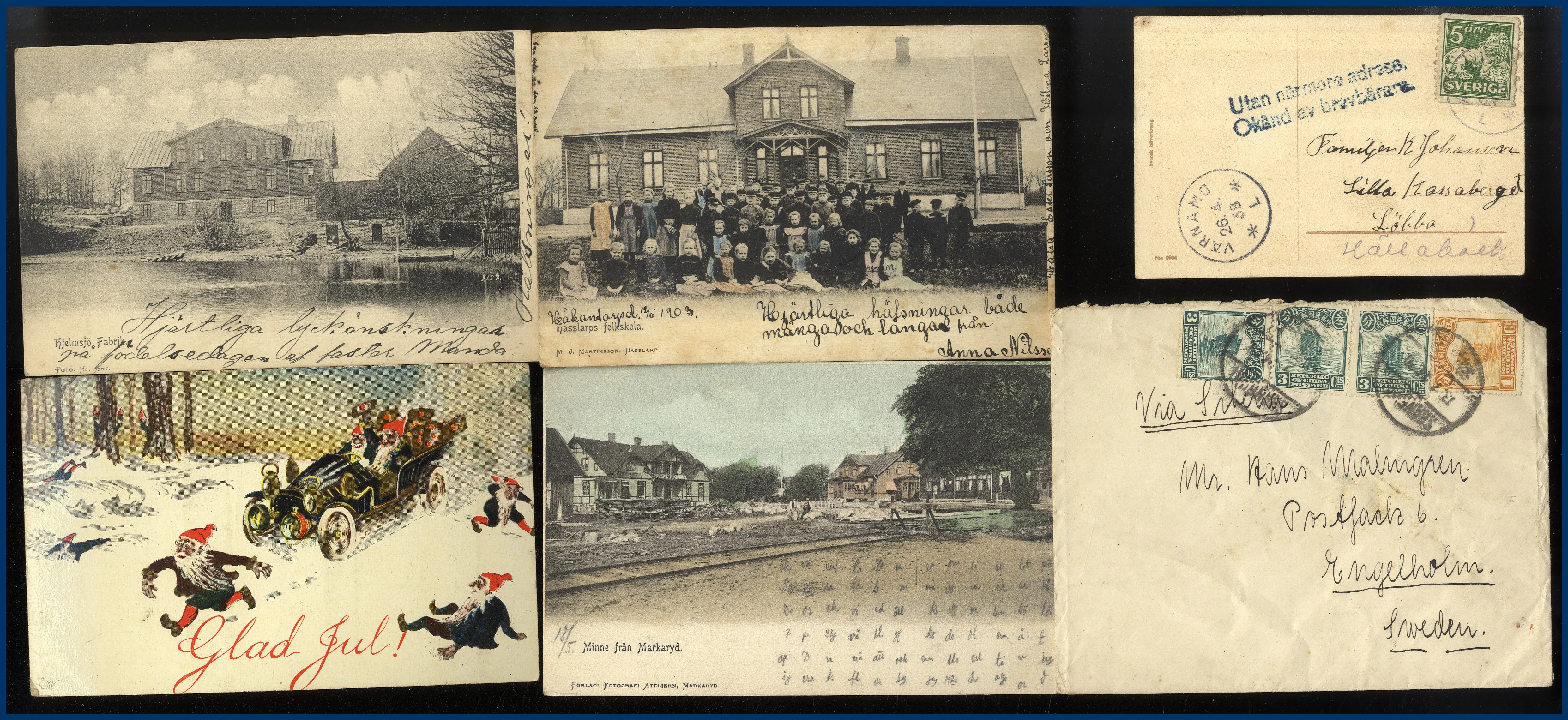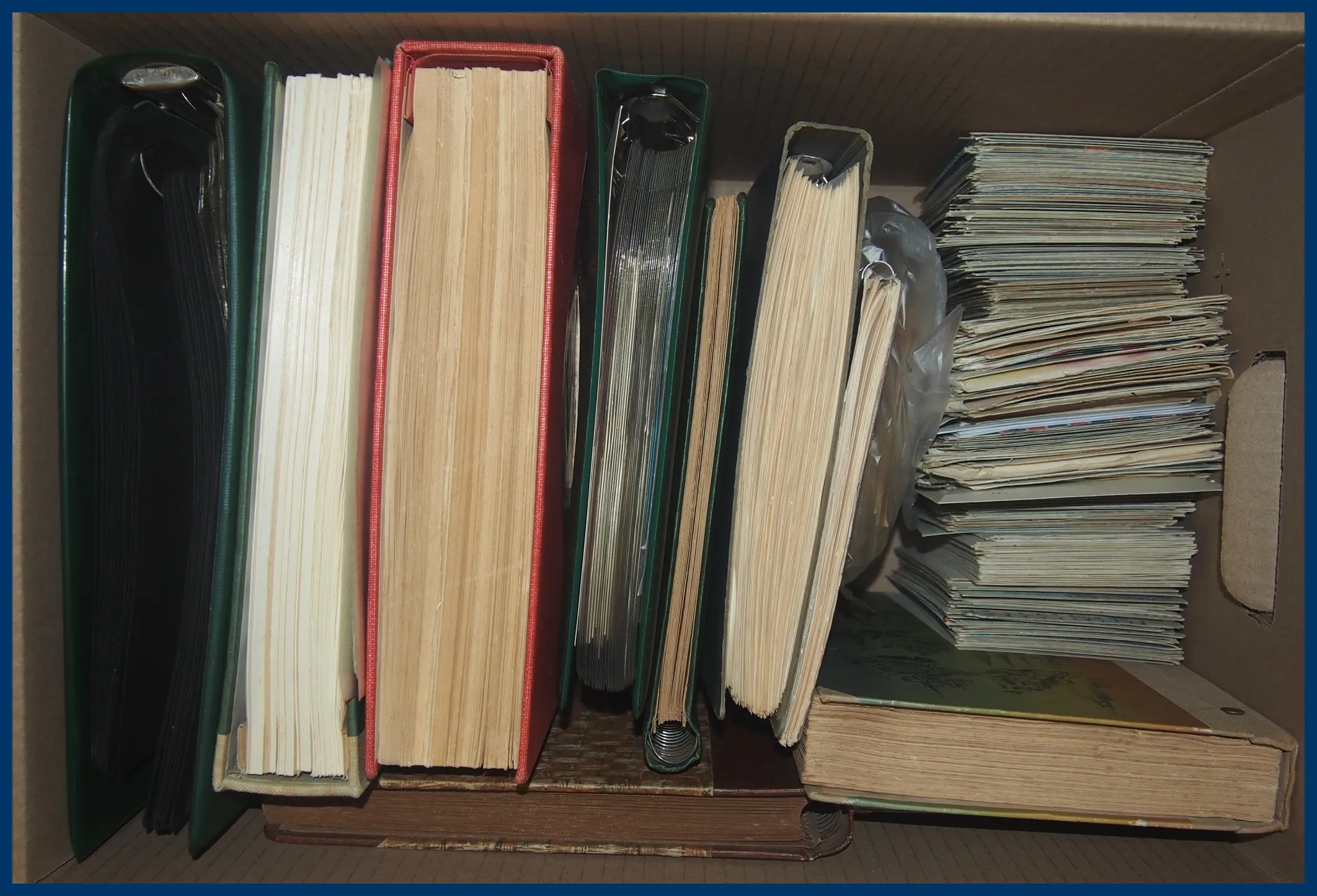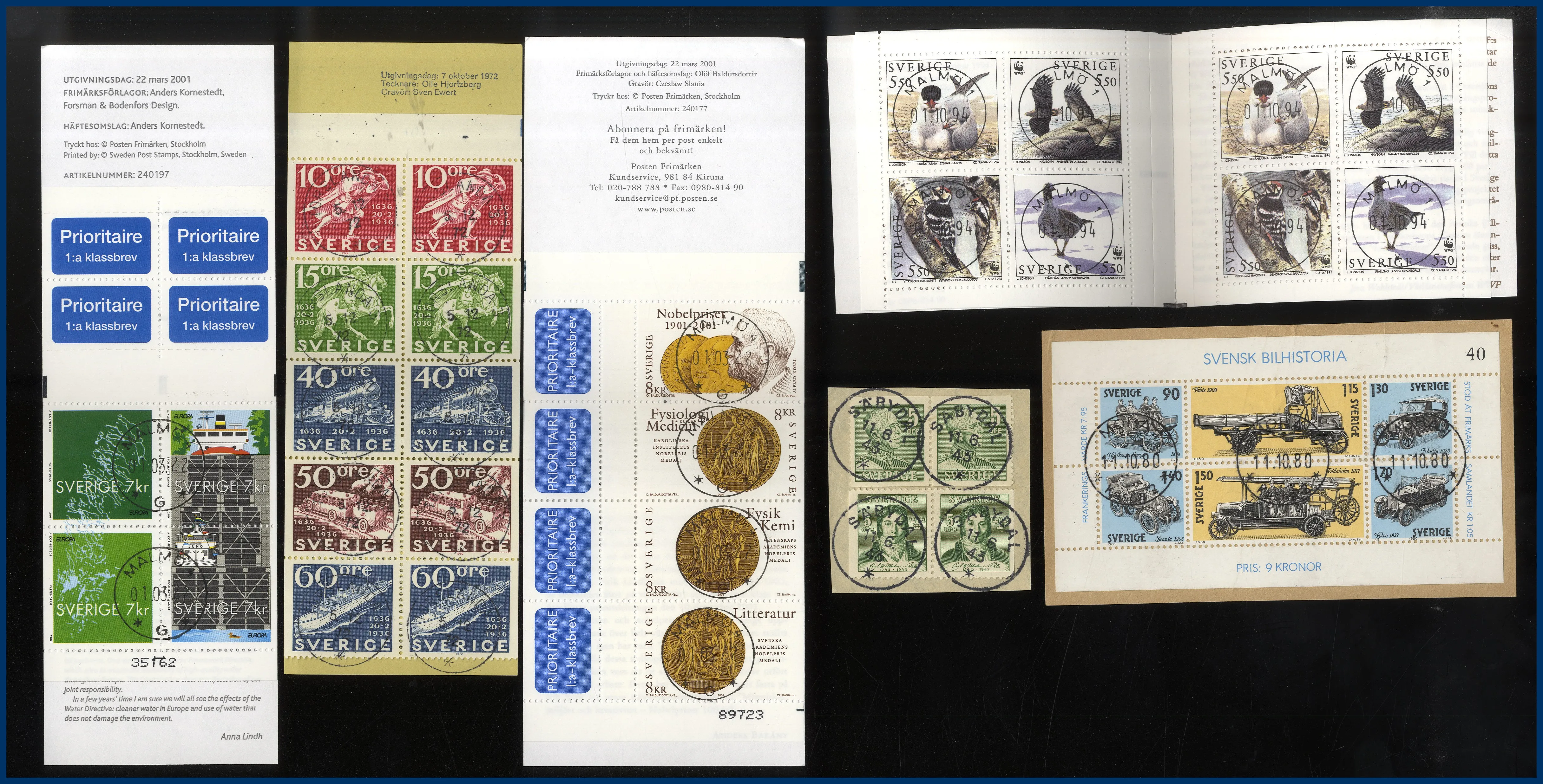 En samling Sverige * med bl a Posthuset, ett par bättre bandmärken samt Kongress/Förening komplett, drygt hundra svenska häften (mest mjuka men även några HA), ett visiralbum med Sverige och Norge **/*, några mindre album med stämplat Sverige och övriga världen (t.ex. några sidor enklare Kina), lite bältespännarmaterial med bl a tändsticksetiketter monterade med fastsättare, en plastpåse med svenska och utländska frimärken i pergamynkuvert, några vackert stämplade svenska häften samt ett par hundra försändelser av olika slag.