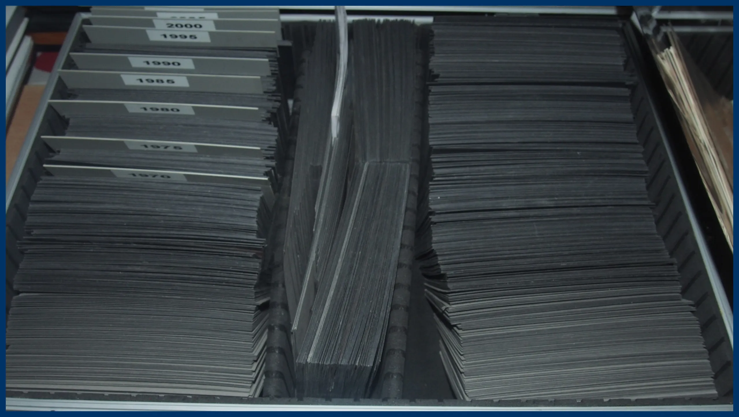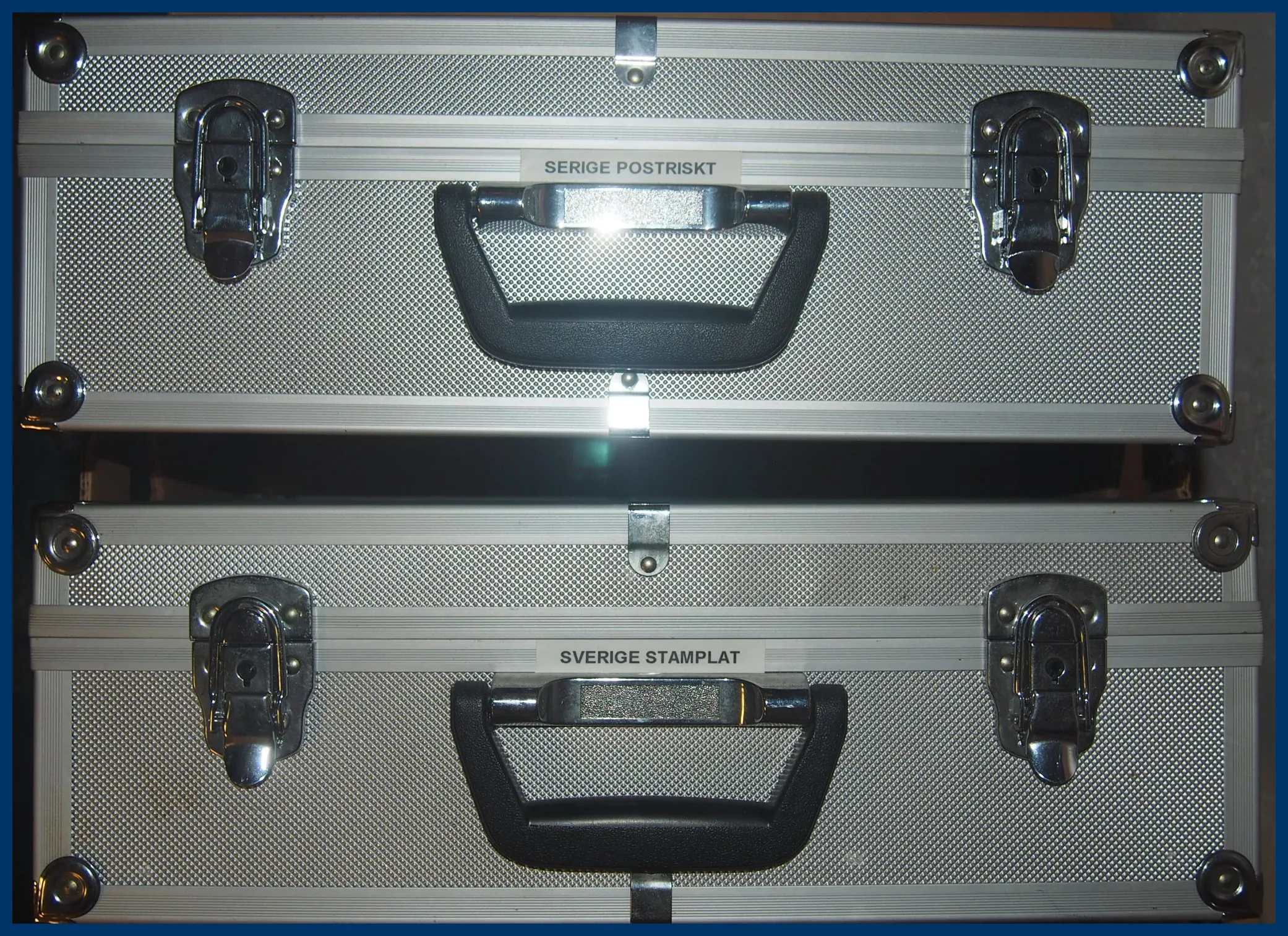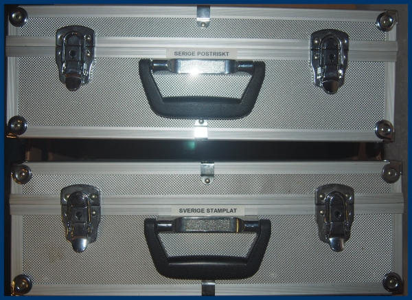 190. (XL) 2 st metallväskor med Sverige på hundratals instickskort.