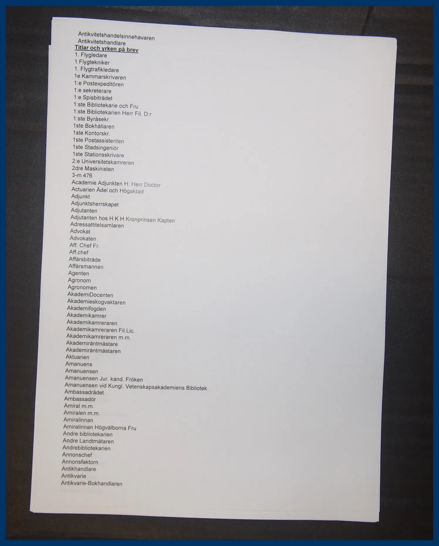 514. (XL) Fascinerande samling "Titlar och Yrken på brev" med