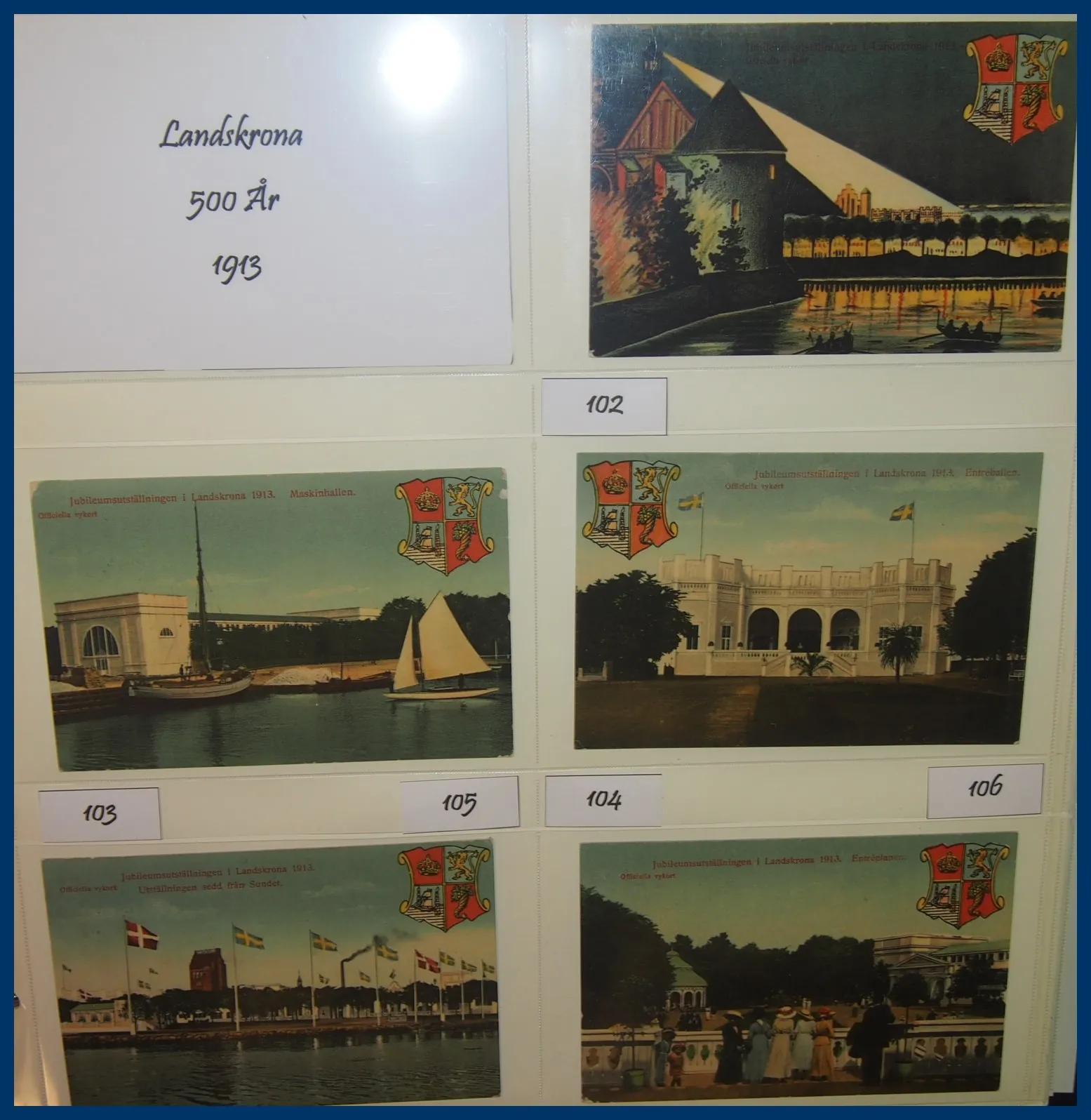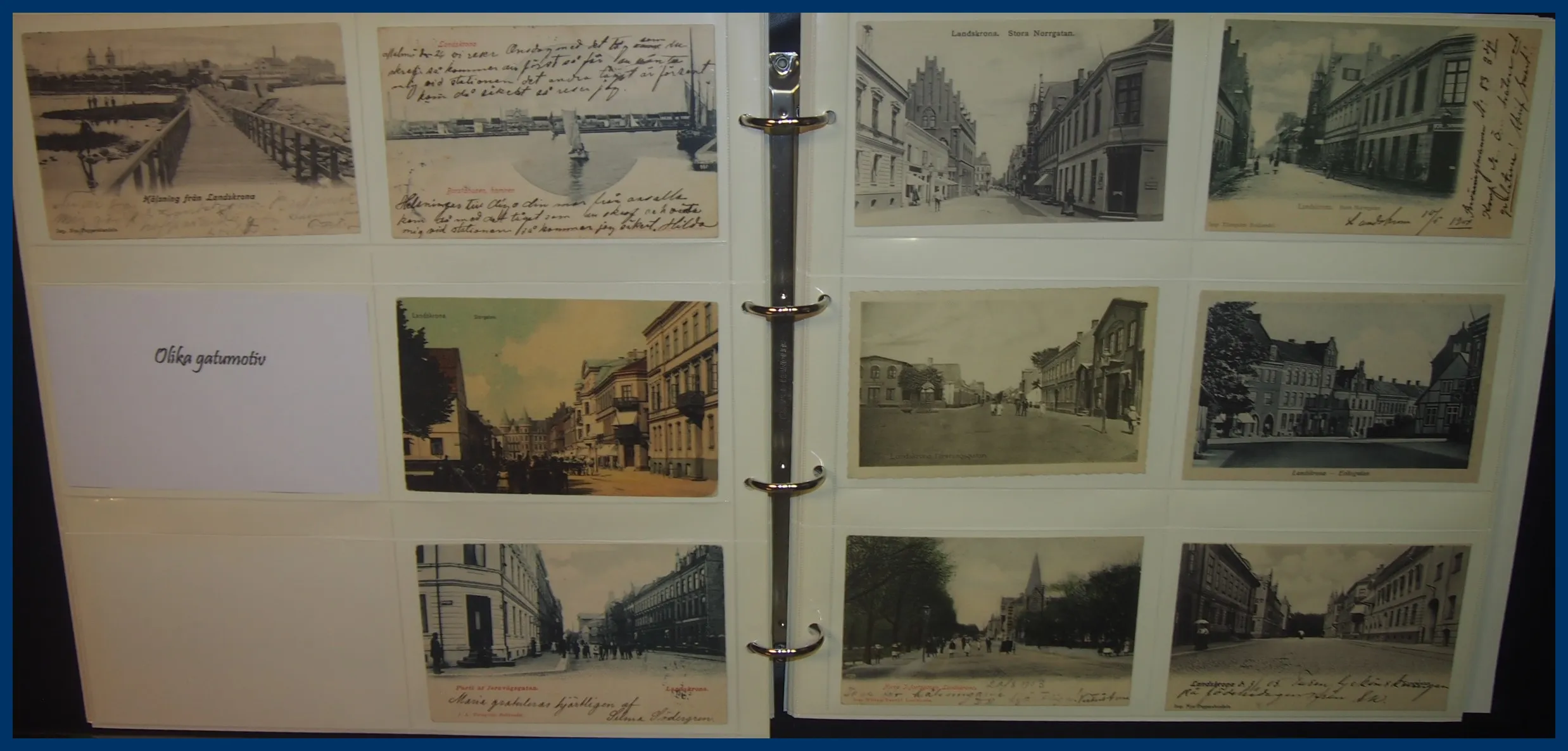 443. (XL) Samling Vykort Landskrona (med omgivningar) i 6 album