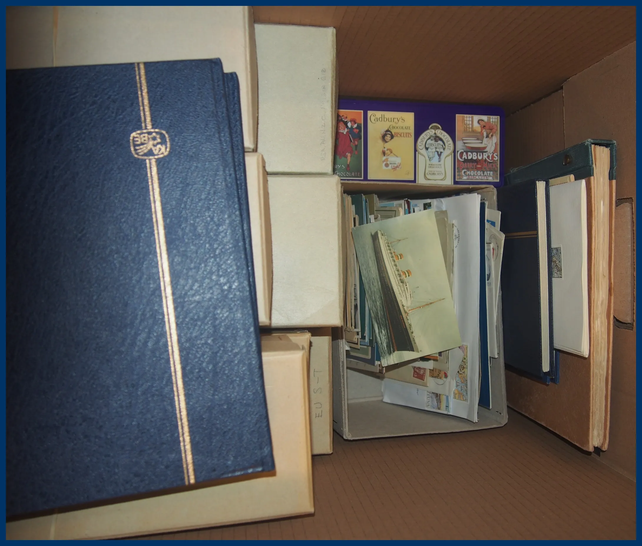 19. (XL) Stor flyttlåda Hela Världen i 15 st lådor med frimärken