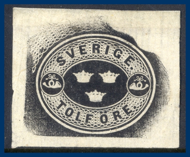 347. 12 öre PROVTRYCK i svart färg för värdestämpeln från