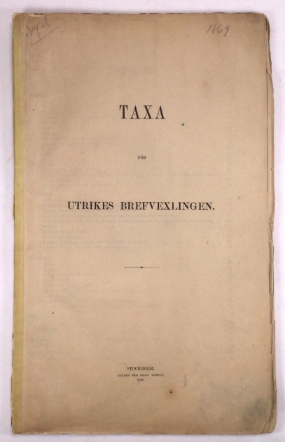 brefvexlingen. 41 sid. Utförliga instruktioner, senare tillägg införda för hand. Limbunden, folioformat i nutida kassett (ateljé b). Godtagbart skick. (Est. SEK 3,000). Proveniens: Ex Frimärkshuset Skandinavisk Filateli AB #127 2009 lot 987 SEK 3,100 + 20%.