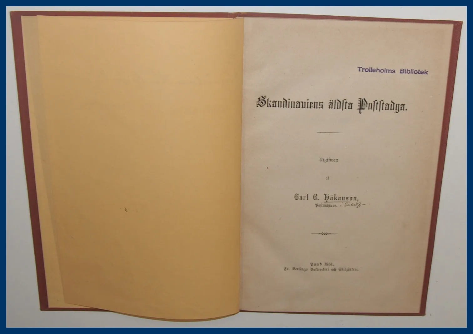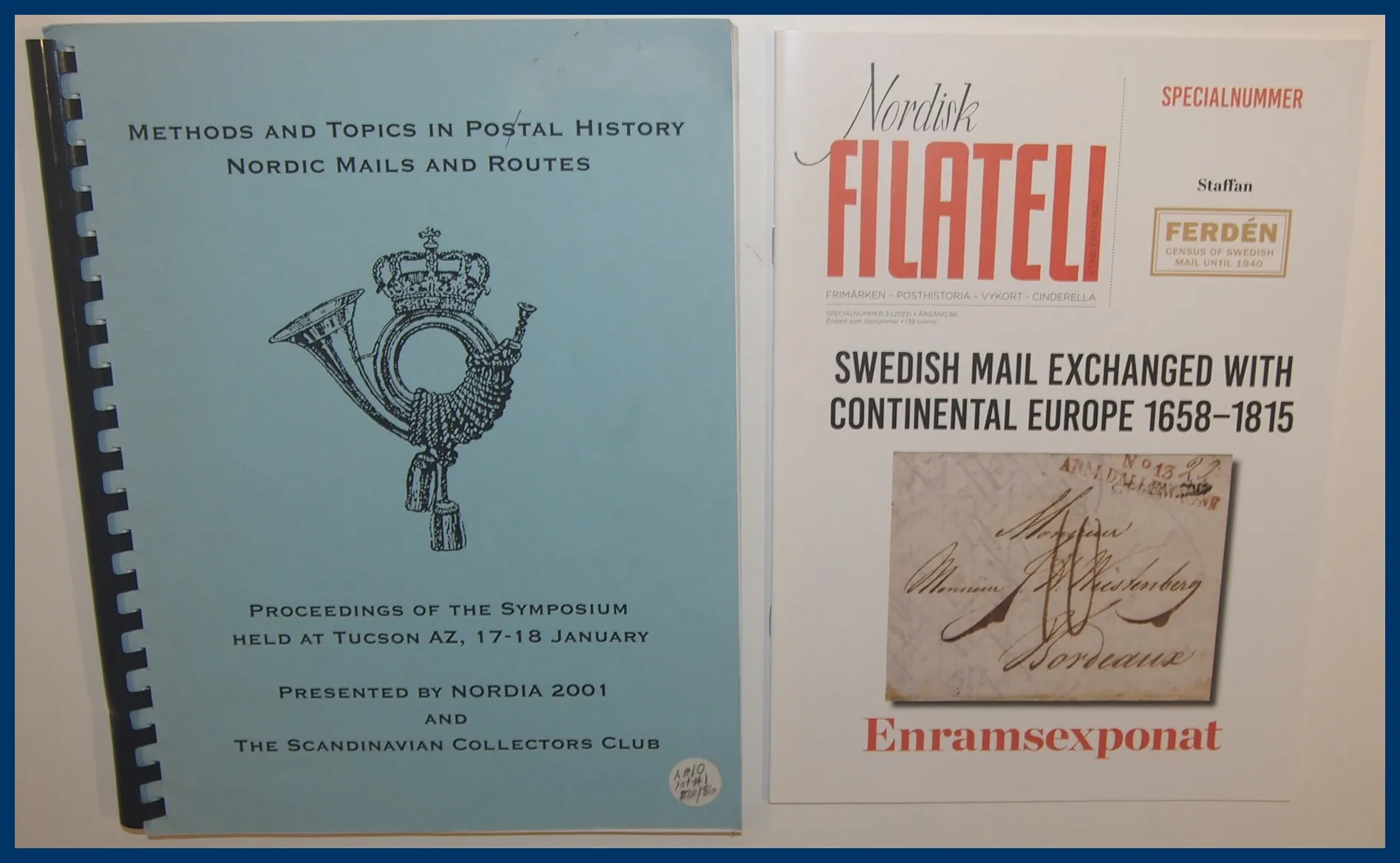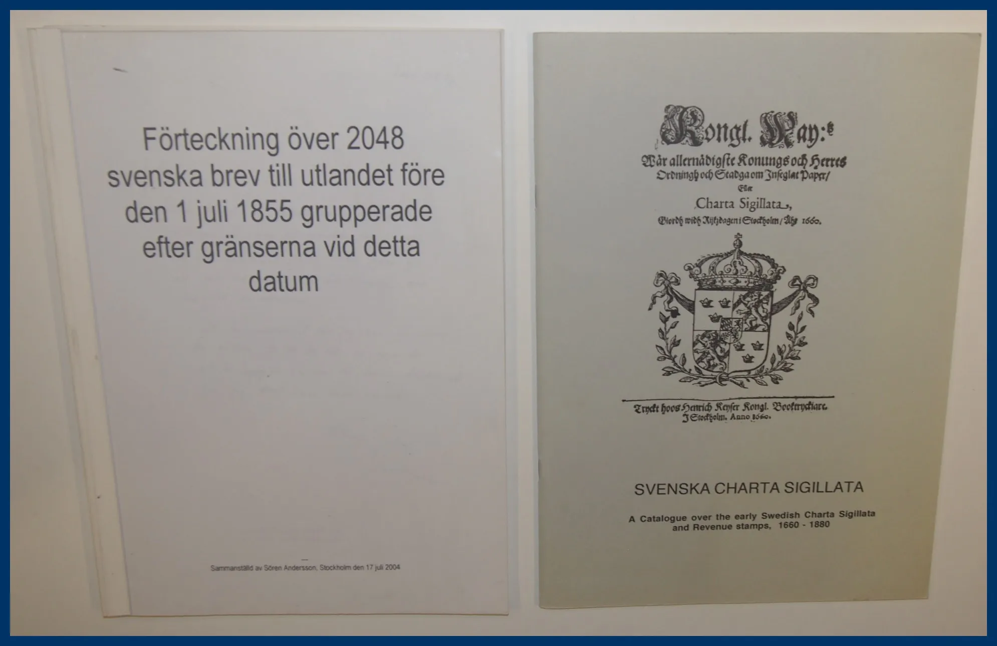 bl.a. Carl C. Håkanson, Skandinaviens äldsta poststadga (faksimil 1881) i vackert band och kassett (ateljé b) samt Levin, Astley, Stockholms poststämplar 1686-1910, inbundna och häftade. Gott skick. (Est. SEK 1,000).