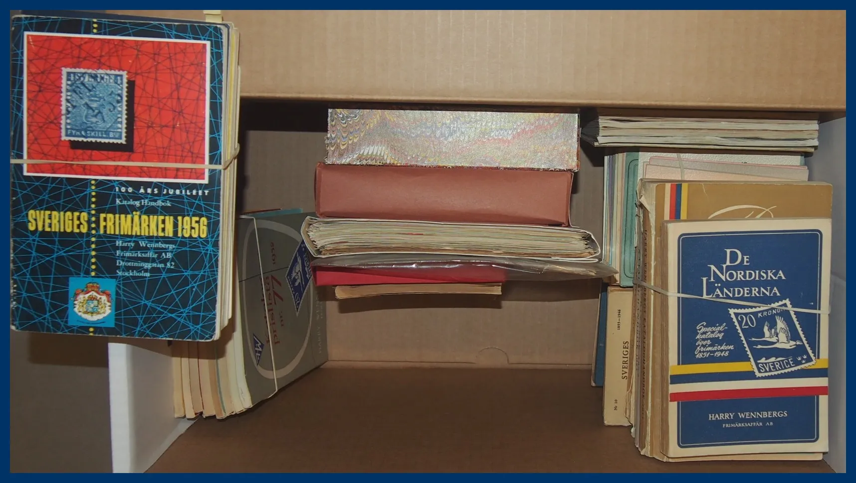 frimärken 1920-1924 och helsaker 1916-1924 inbunden (tillhört Hugo Sjöberg), HAWE anbudsauktion nr 1-13 (1936-1945) i kassett samt nr 17-18 (1951), Offerter 1947 häftade, Wennbergs Post (1948-1954) i kassett. Godtagbart - gott skick. (Est. SEK 1,200).
