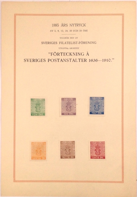 enbart 1885 års nytryck av Vapen-märkena (löst blad från lyxupplagan). Mycket gott skick. (Est. SEK 1,500).