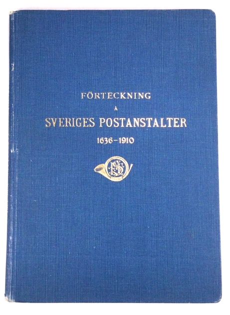 å Sveriges Postanstalter 1636-1910. Inbunden, 103 + 1 sid. Gott skick. (Est. SEK 2,000).
