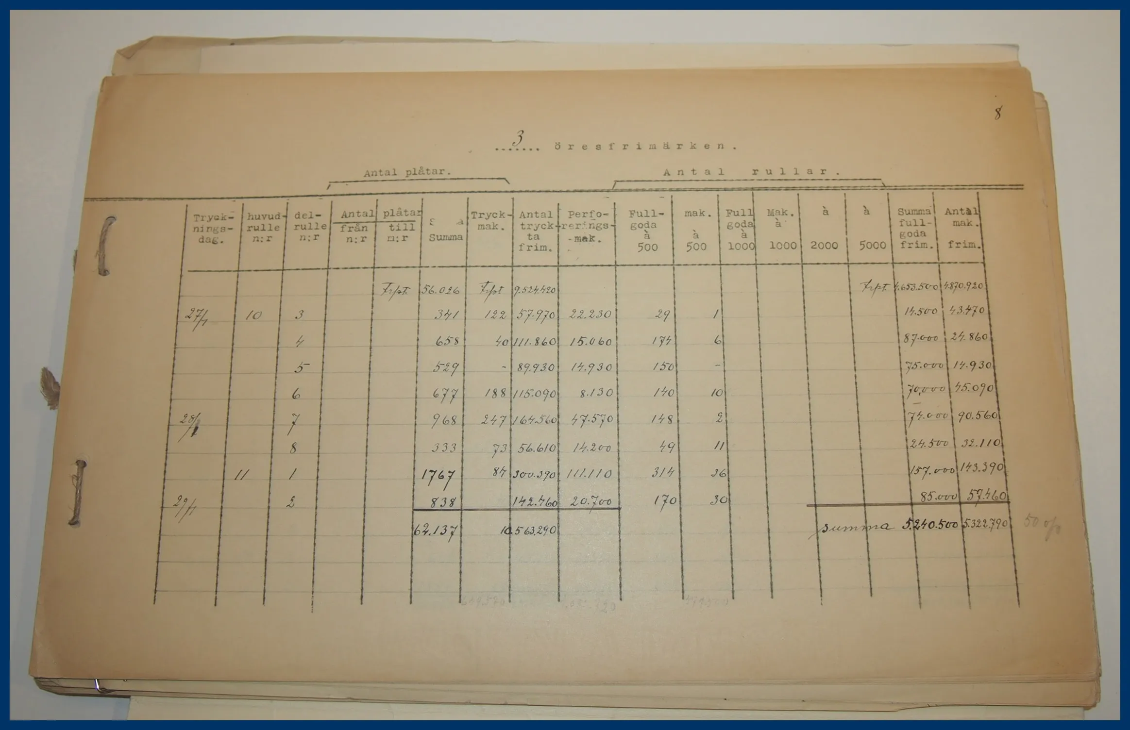 22018.1919/1944: Postverkets Frimärkstryckeri. Anskaffande av