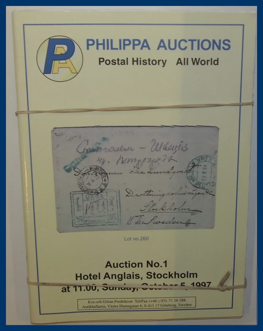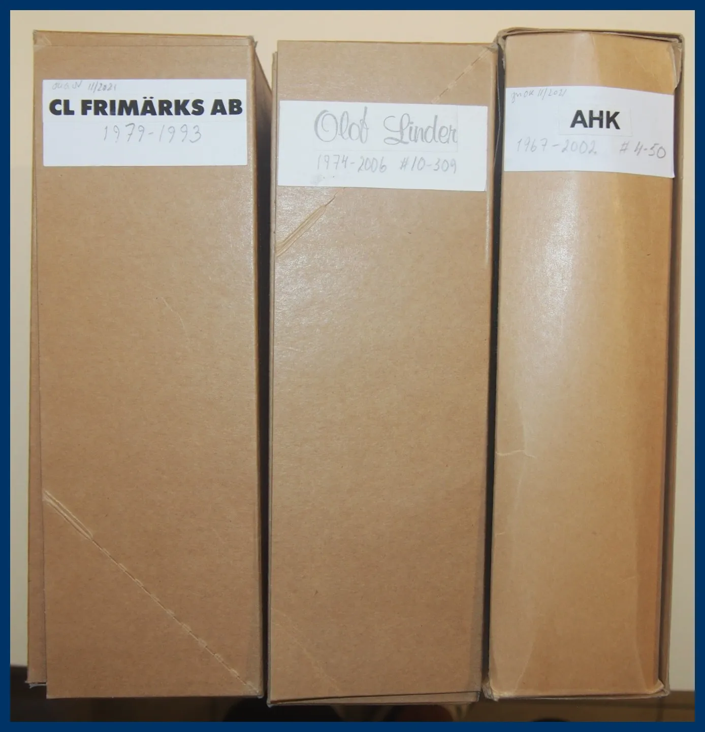 (1922-2014), AHK nr 4-50 (1967-2002), Stockholms Auktionsverk (1982-1989), Olof Linder (1974-2006), CL Frimärks AB (1979-1993), Philippa Auctions (1997-2005). Gott skick. (Est. SEK 600).