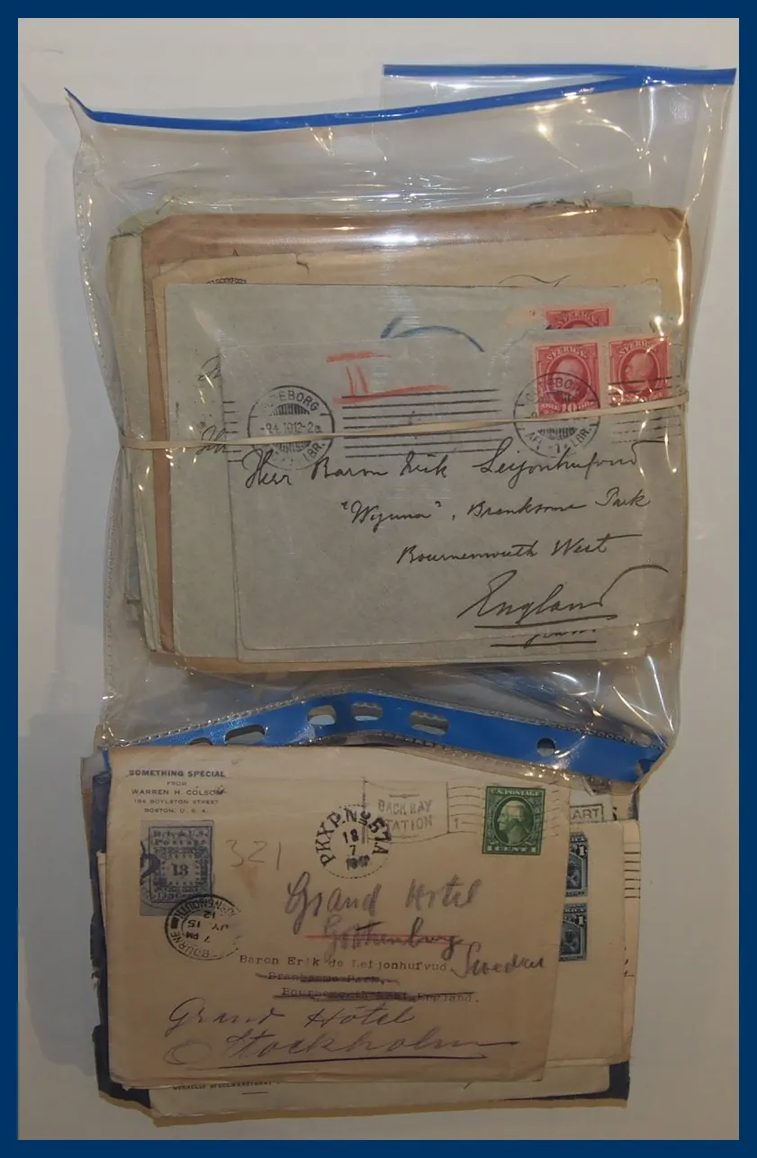 Notera: Cirka 100 försändelser till familjen Leijonhufvud (1910-tal) ingår, även censur etc.