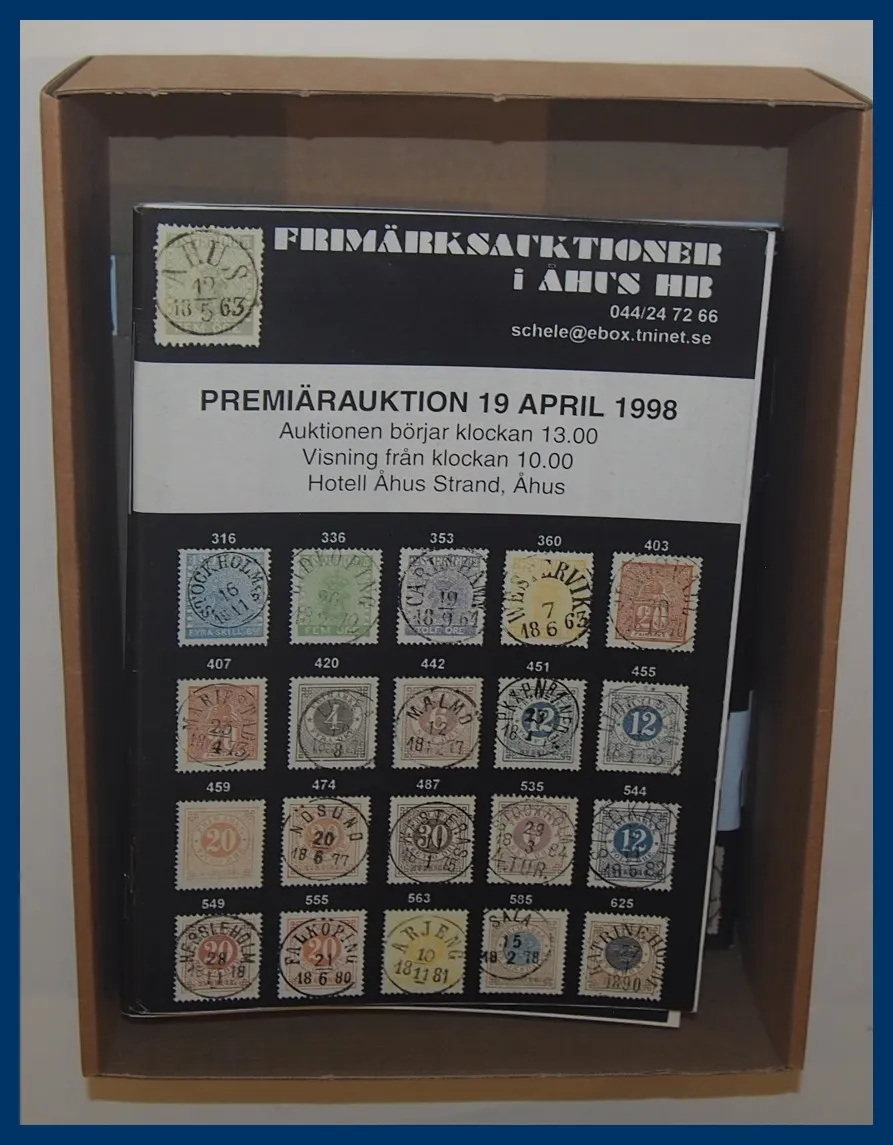 Auktionskataloger från premiärauktionen 1998 - 2016 (2 kataloger per år) samt 2017 och 2018 (en per år), flertalet med resultatlistor. Mycket gott skick. (Est. SEK 600).