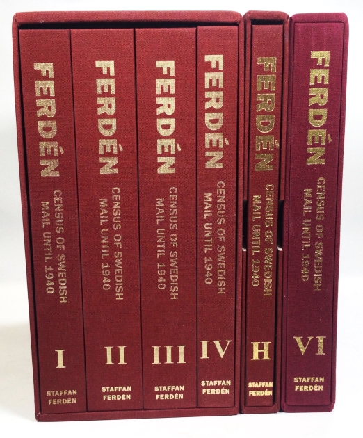 Mail until 1940, Band I-IV i kassett, Band H (V) och VI. Totalt 2,319 sid. Samtliga bundna i klotband med 3 kassetter. Nyskick. (Est. SEK 8,000).
