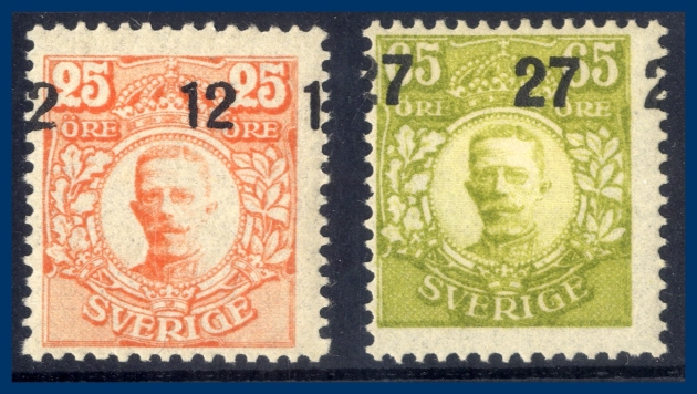 369. 3 Förskjutna påtryck på vardera 12/25 öre och 27/65 öre *