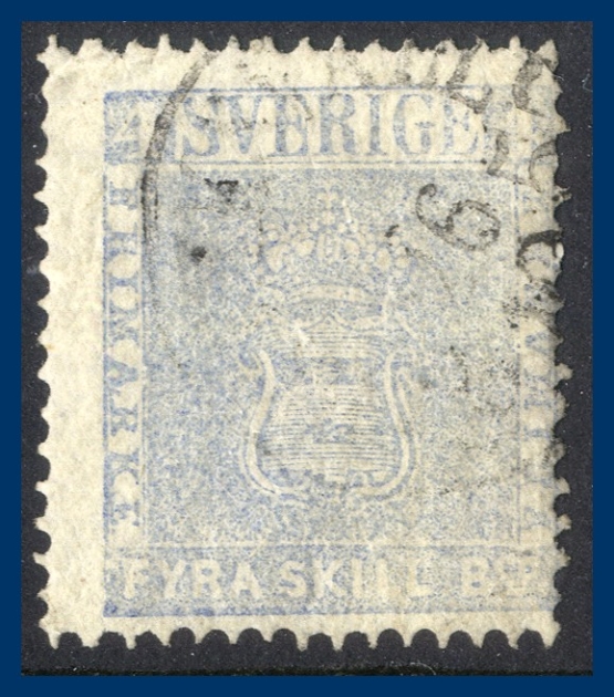 349. 4 Skilling Banco Gråblå (F.2 j2) lätt stämplad 1857.