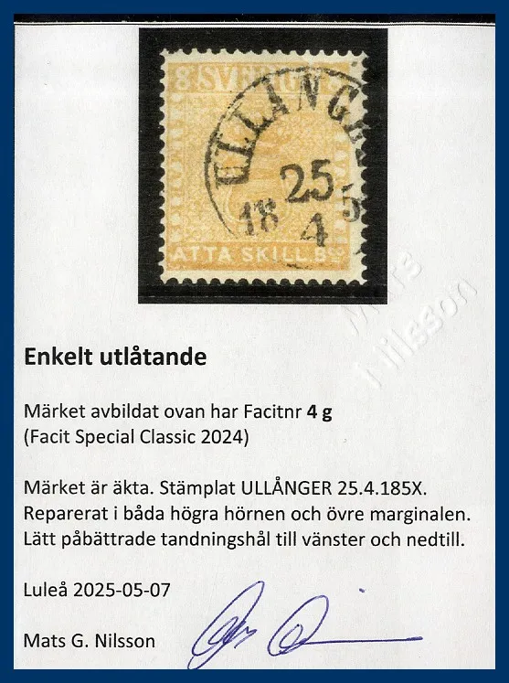 258. 8 Skilling Banco (F.4g) stämplat "ULLÅNGER 25.4.185x"
