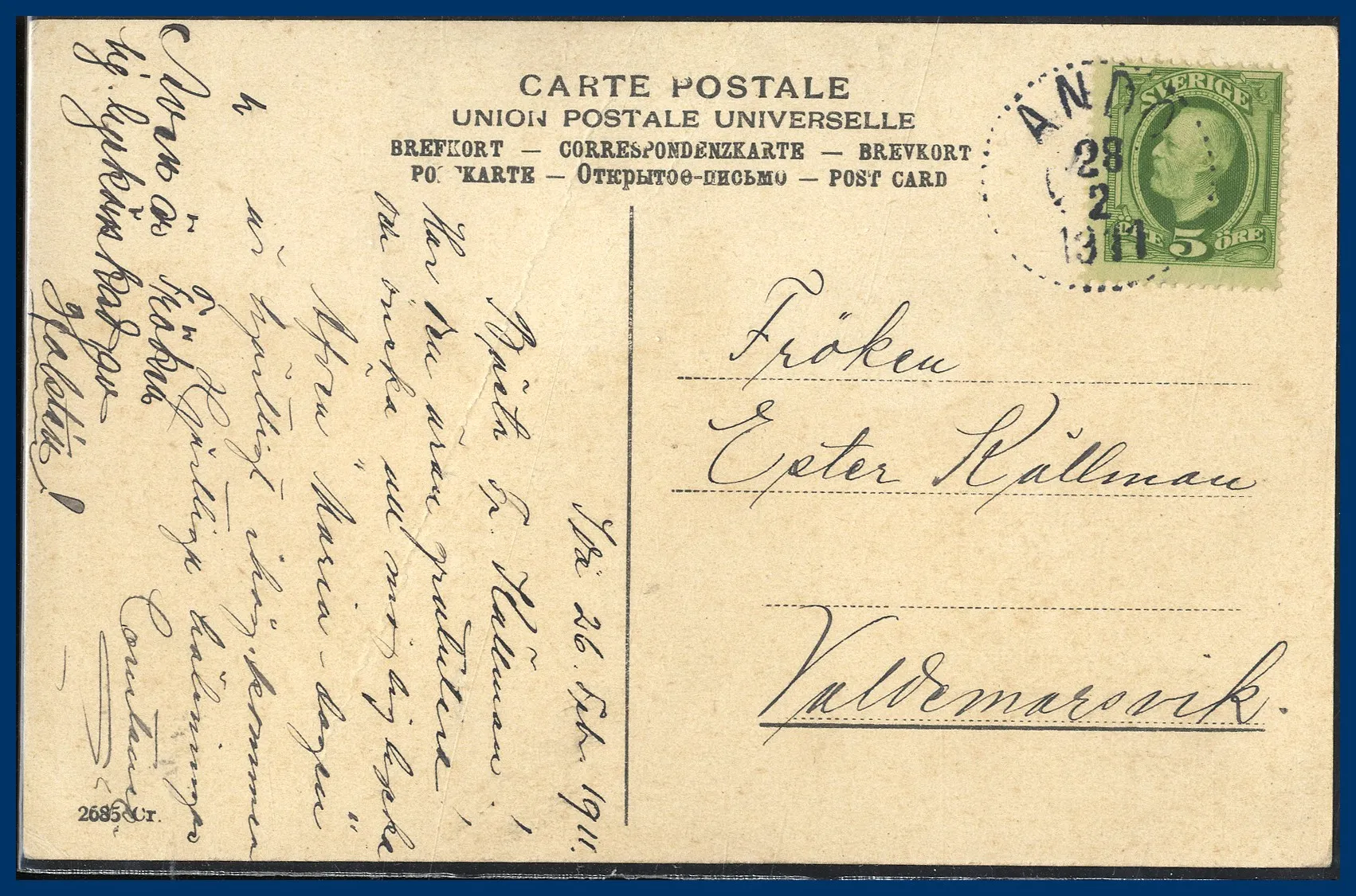 Vi säljer hela Kent Kenndals samling i antingen singelutrop eller i små grupper. Allt sorterat A-Ö så att varje enskild auktion har märken från de flesta landskap. Första auktion var i oktober 2023 och nu säljer vi den avslutande delen med samlingens försändelser.
