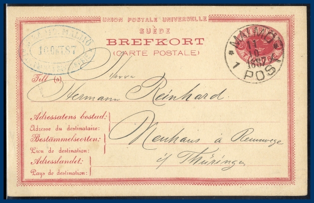 441.bke 4 stämplat MALMÖ 1 POST (M) 1887-10-11 N10 typ 2