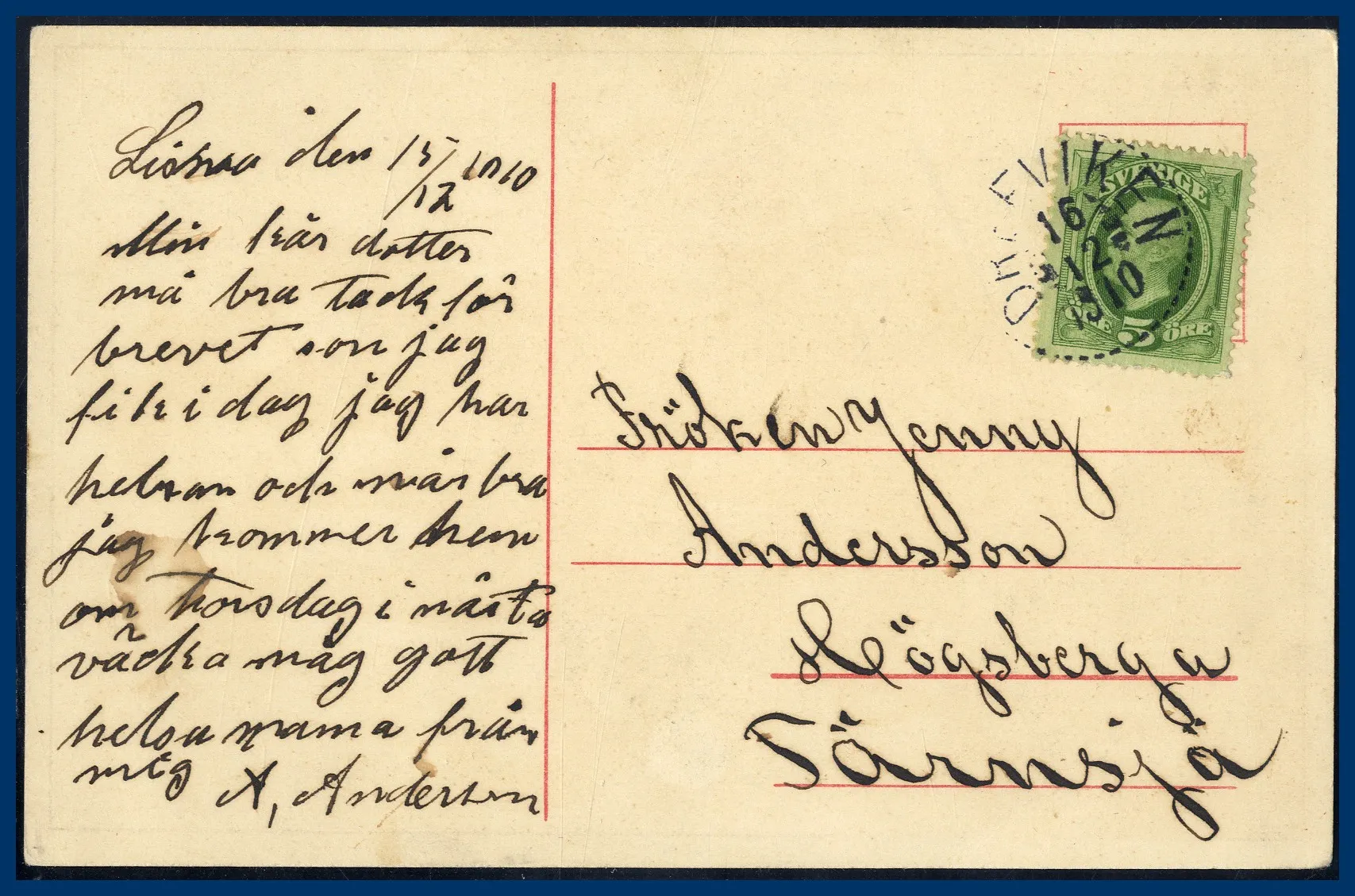 Vi säljer hela Kent Kenndals samling i antingen singelutrop eller i små grupper. Allt sorterat A-Ö så att varje enskild auktion har märken från de flesta landskap. Första auktion var i oktober 2023 och nu säljer vi den avslutande delen med samlingens försändelser.