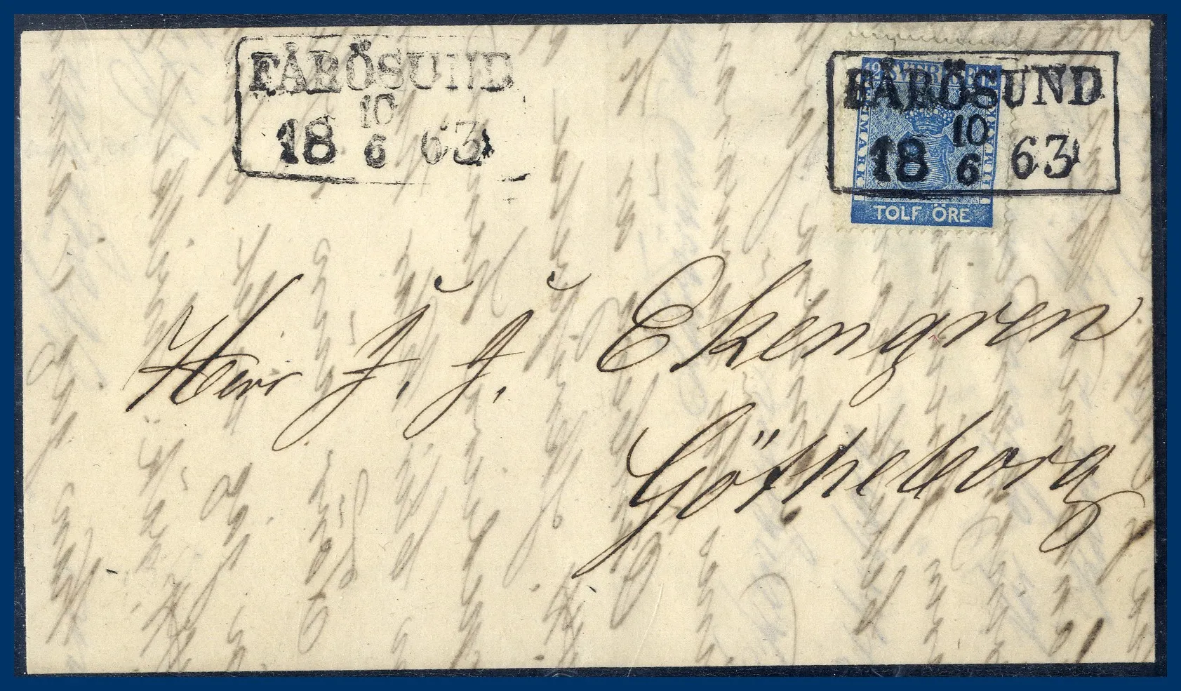 320. "FÅRÖSUND 10.6.1863" Fyrkantsstämpel i LYX kvalitet