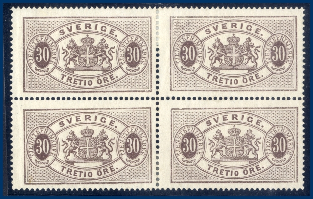 375. Fyrblock 30 öre stora Tjänste t.14 * med små pergamyn-