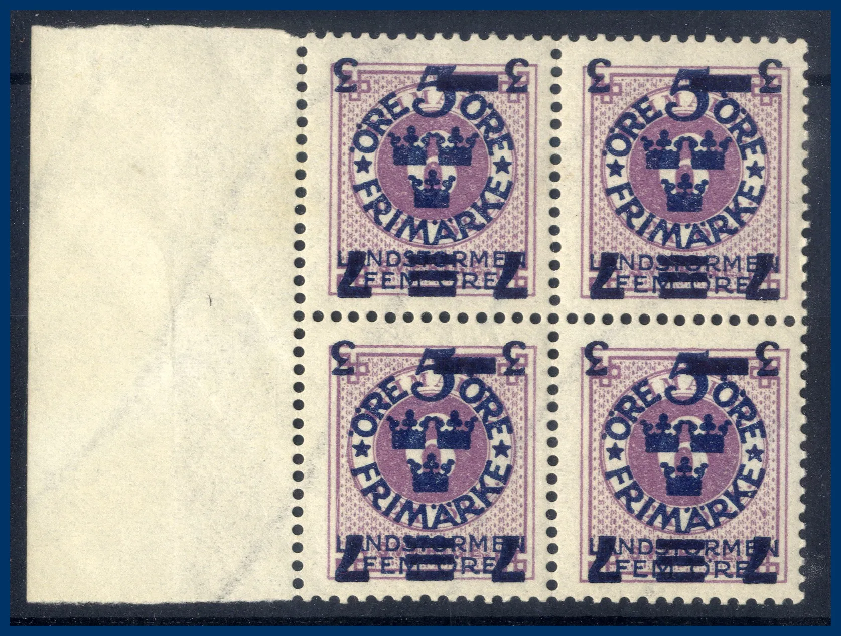 Landstorm III ** med arkmarginal till vänster. (F.130 v1) Facit 24.000 kr.